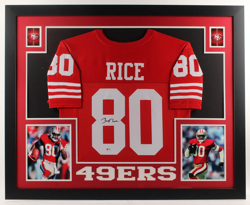 Jerry Rice Signed 35x43 Custom Framed Jersey (Beckett COA)