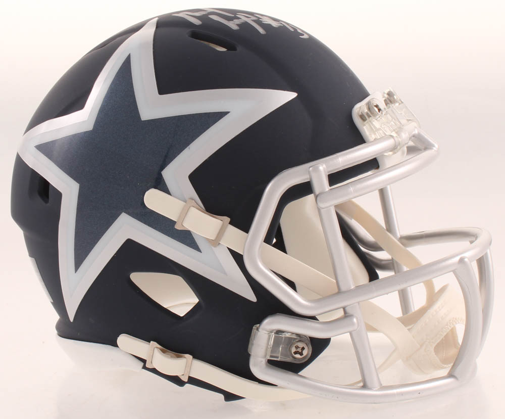 Riddell Dallas Cowboys AMP alternate speed mini-helmet. Hand-signed in silver paint pen by Michael Gallup.