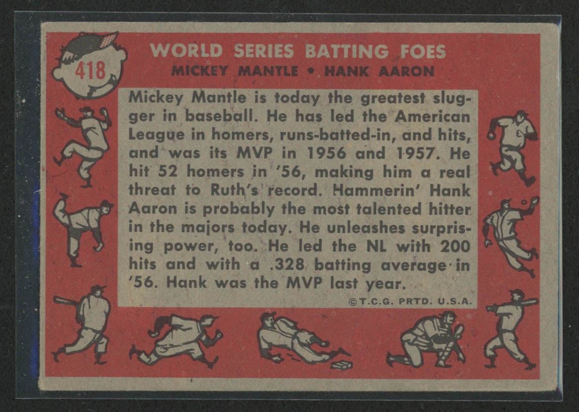 Mickey Mantle / Hank Aaron 1958 Topps #418 World Series Batting Foes
