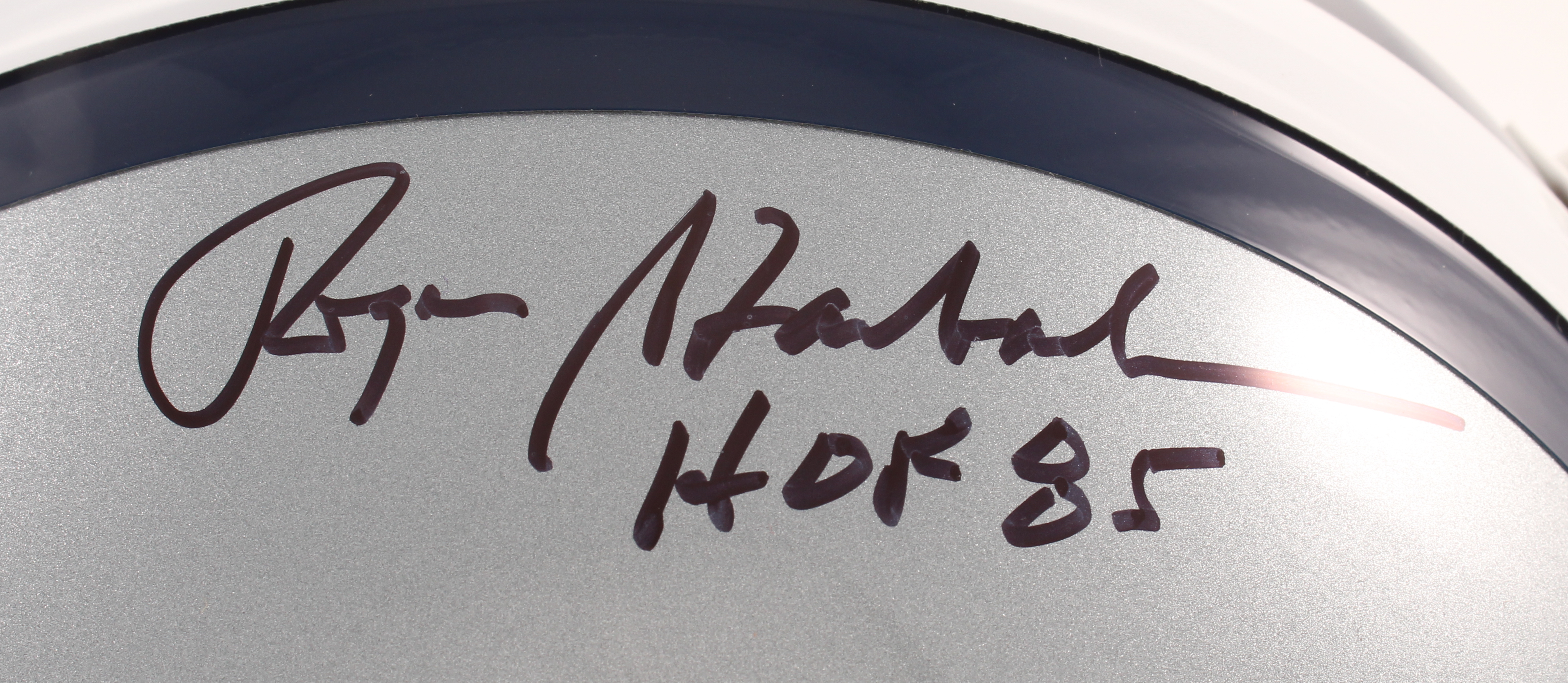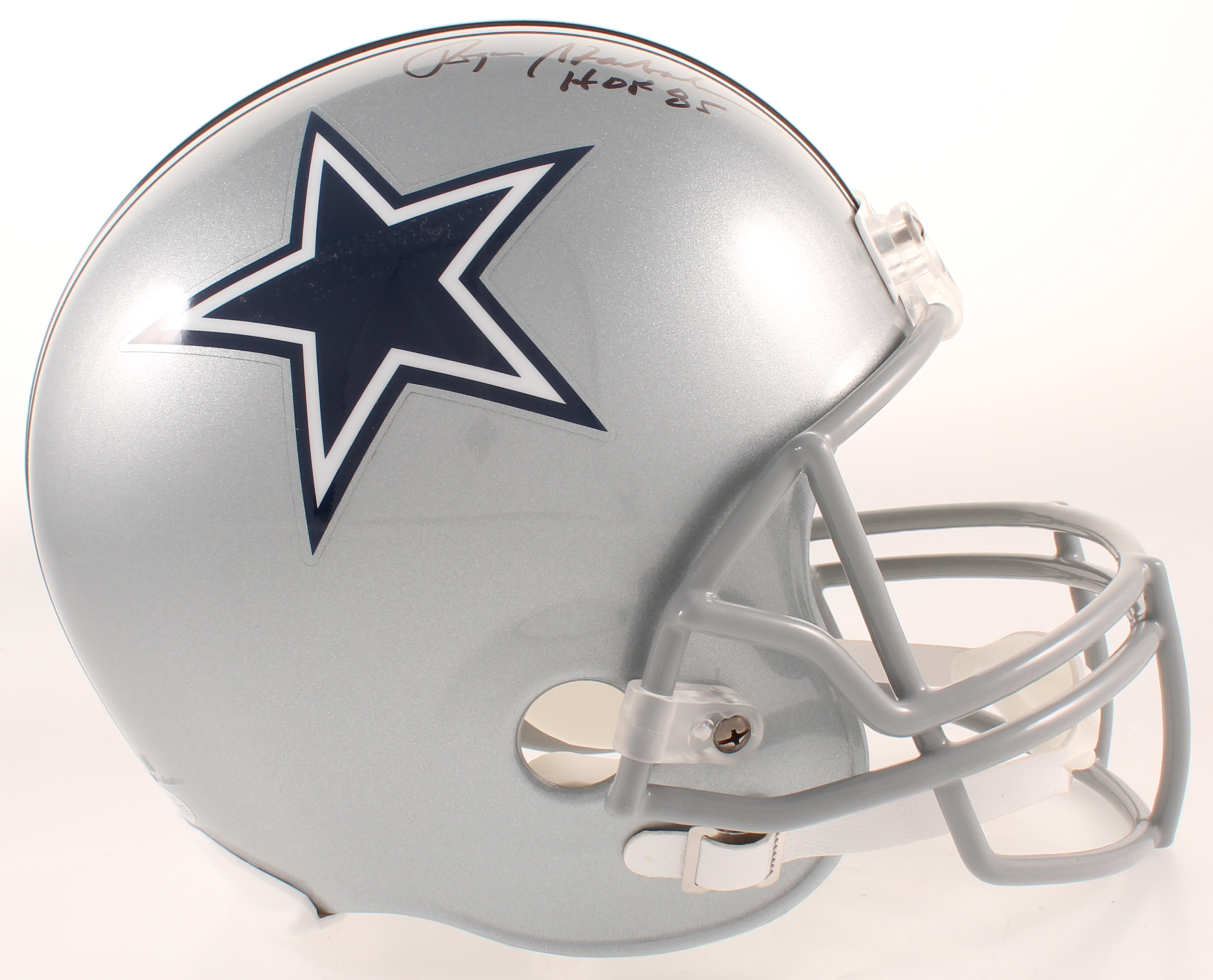 Riddell Dallas Cowboys Full-Size Replica helmet. Hand-signed in black felt-tip pen by Roger Staubach (HOF).