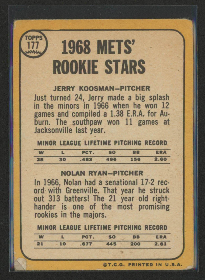 1968 Topps #177 Rookie Stars Jerry Koosman RC / Nolan Ryan RC
