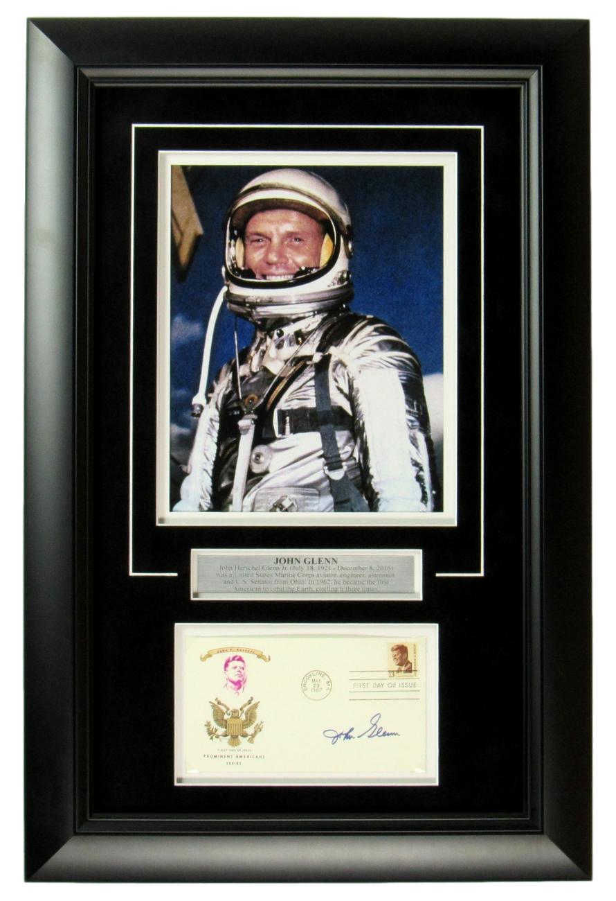John Glenn Signed 16x24 Custom Framed FDC Envelope Display (JSA COA)