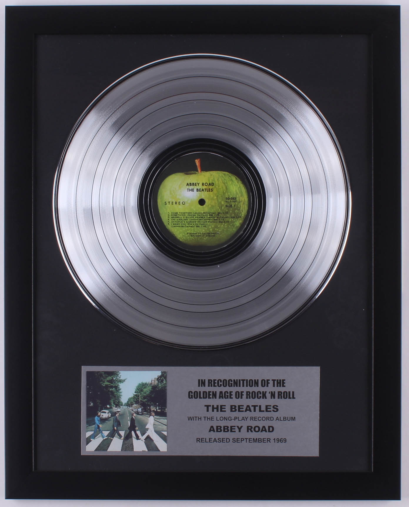 The Beatles 15.75x19.75 Custom Framed Silver Plated "Abbey Road" Record Album Award Display