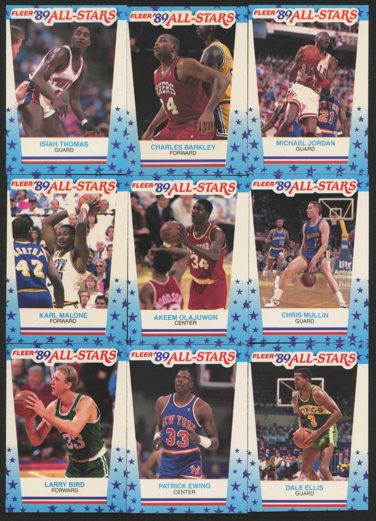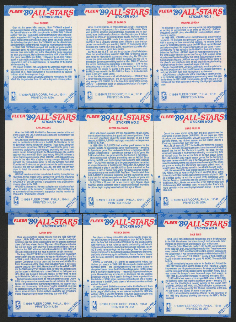 1989-90 Fleer Stickers Near Complete Set of (9/11) Cards with #3 Michael Jordan, #10 Larry Bird, #4 Charles Barkley, #7 Patrick Ewing