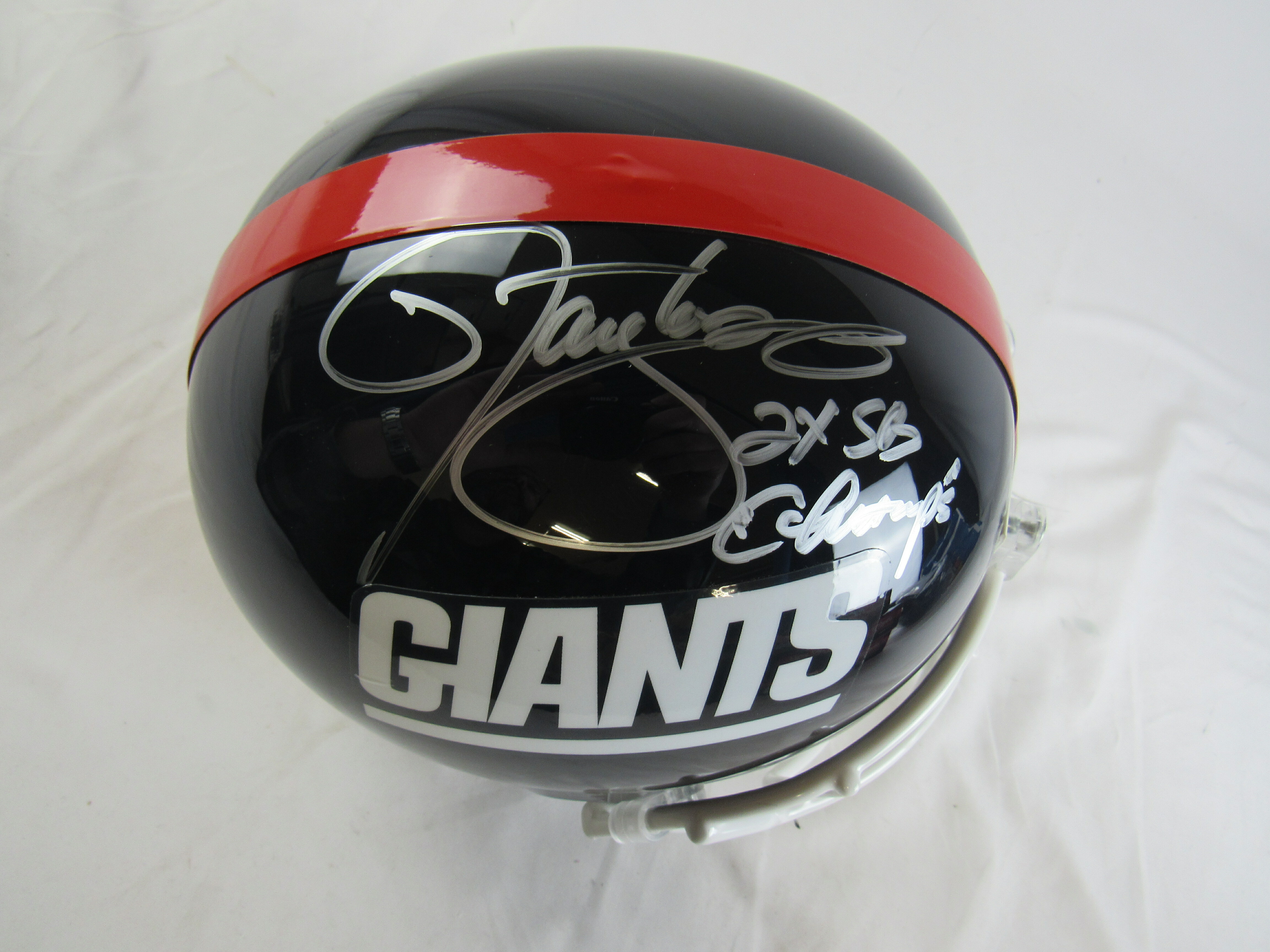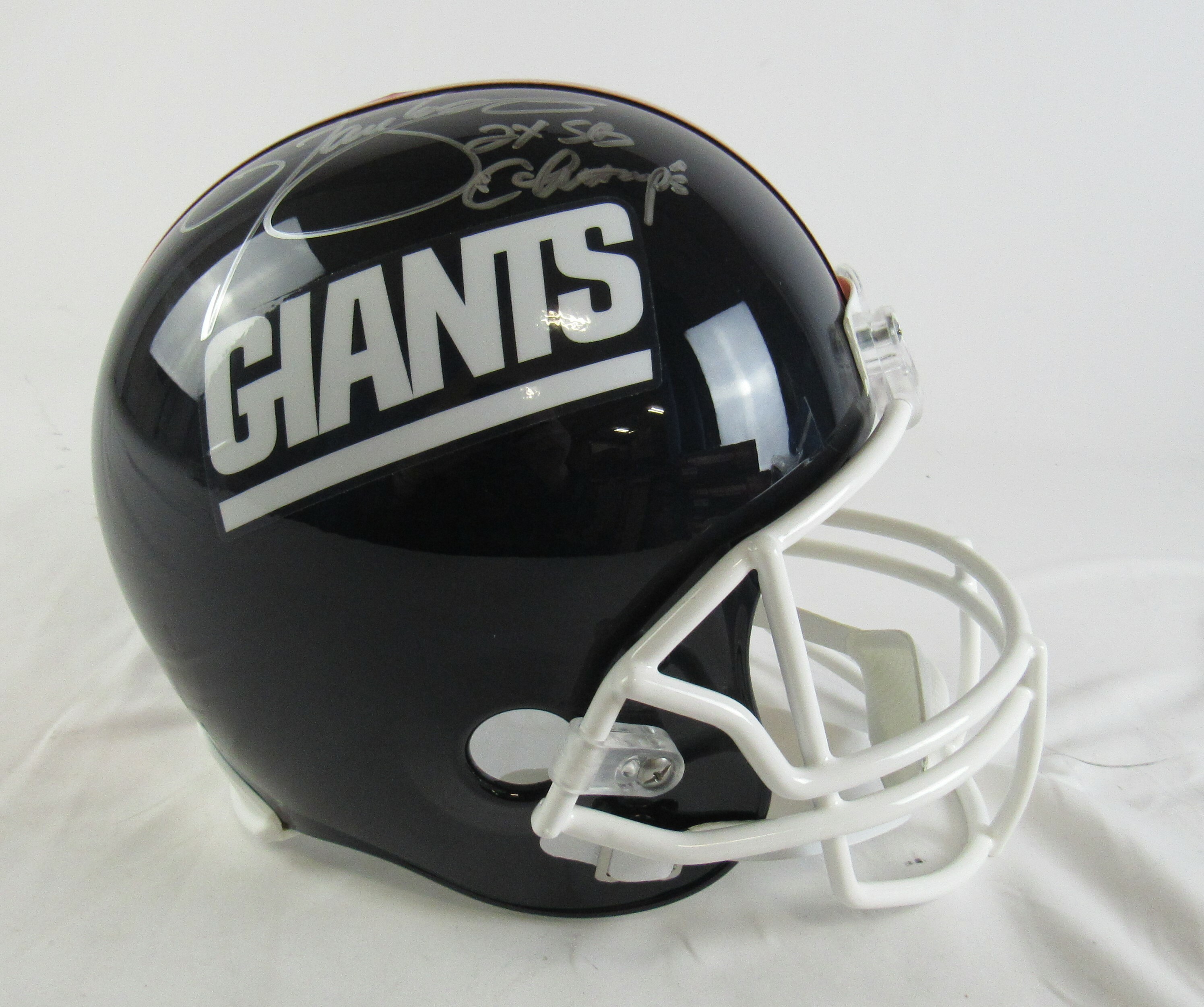 Riddell New York Giants full-size replica helmet. Hand-signed and inscribed in silver paint pen by Lawrence Taylor (HOF).