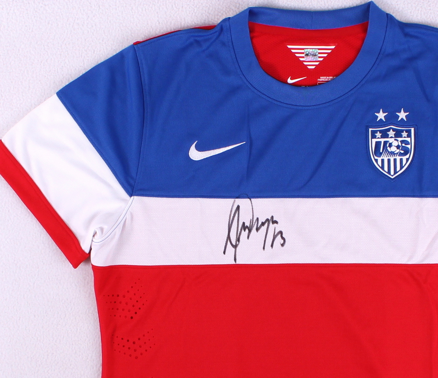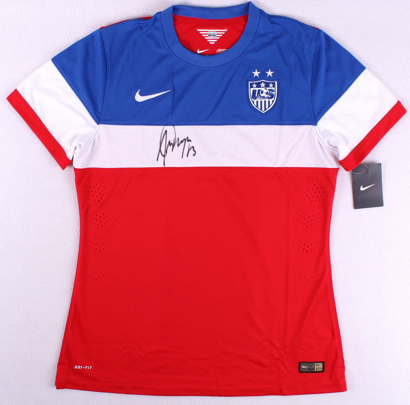 Nike Dri-FIT jersey, size L. Hand-signed in black felt tip pen by Alex Morgan. The autograph includes an official Sports Integrity hologram and COA for authenticity purposes.