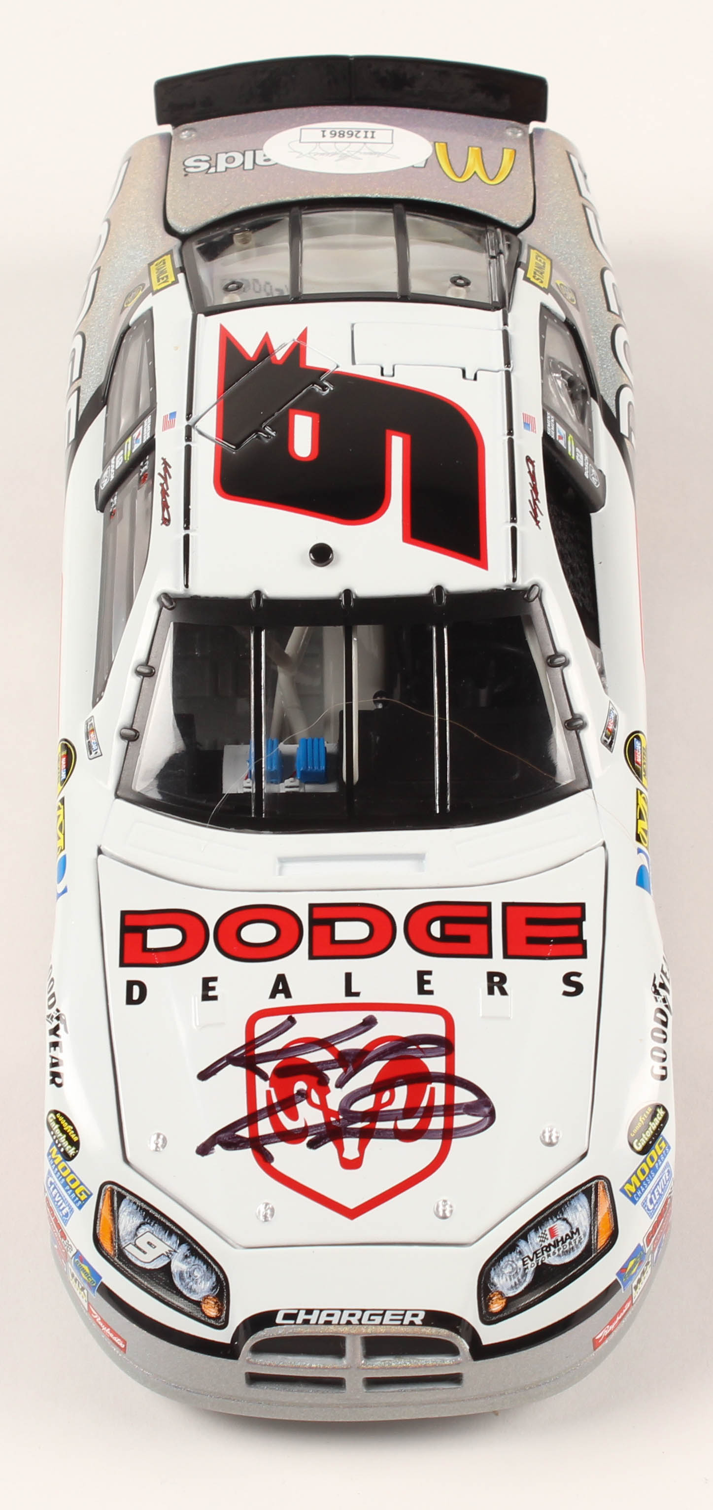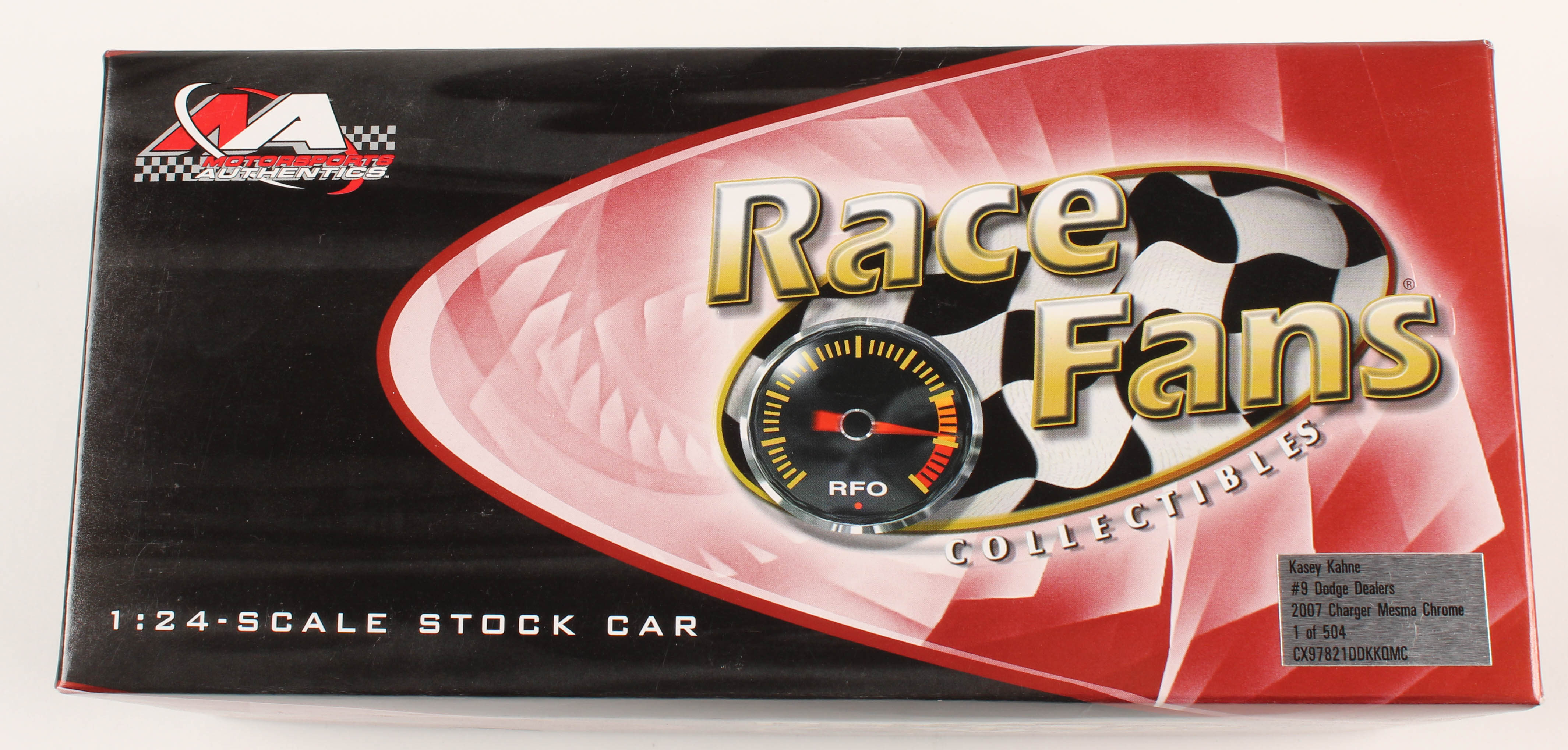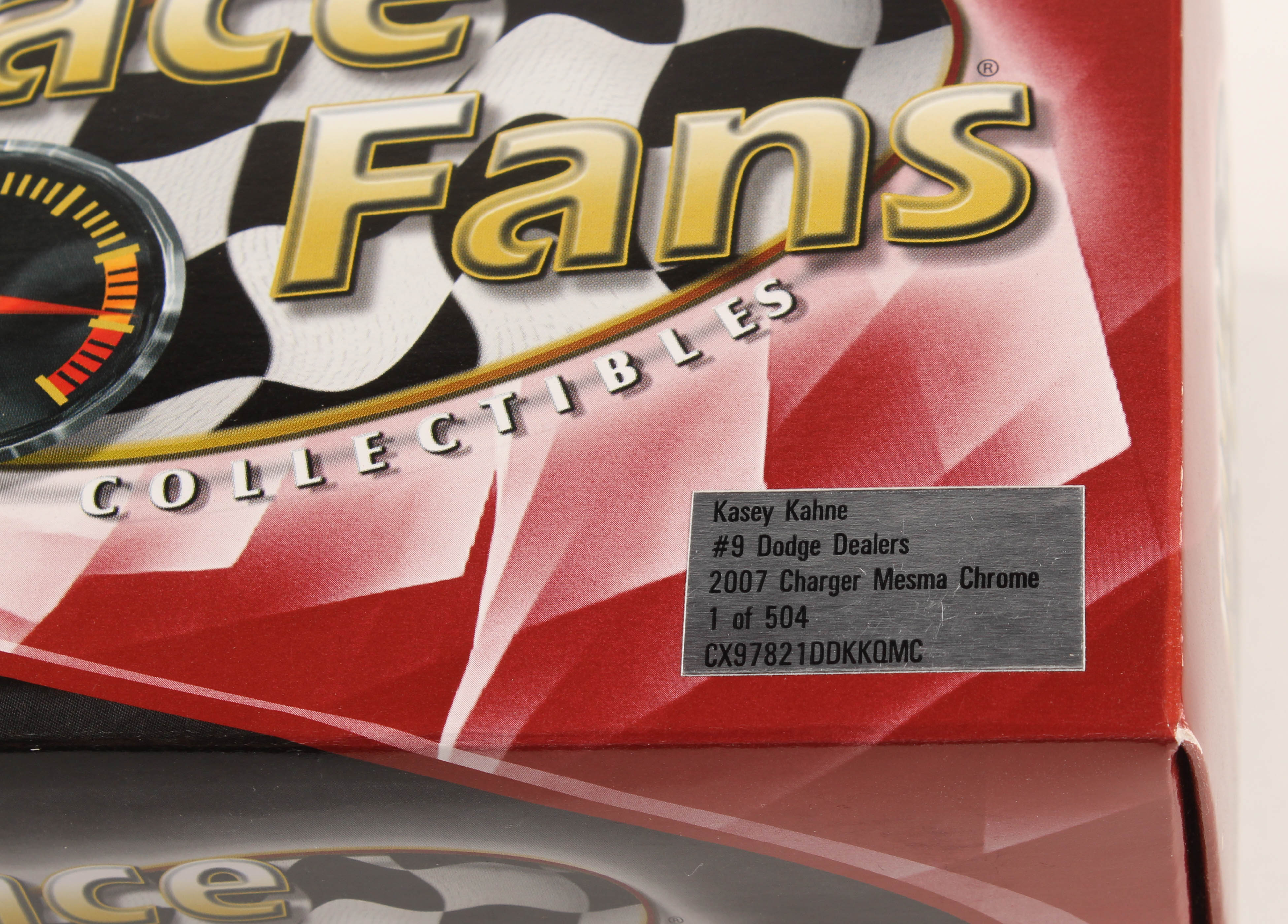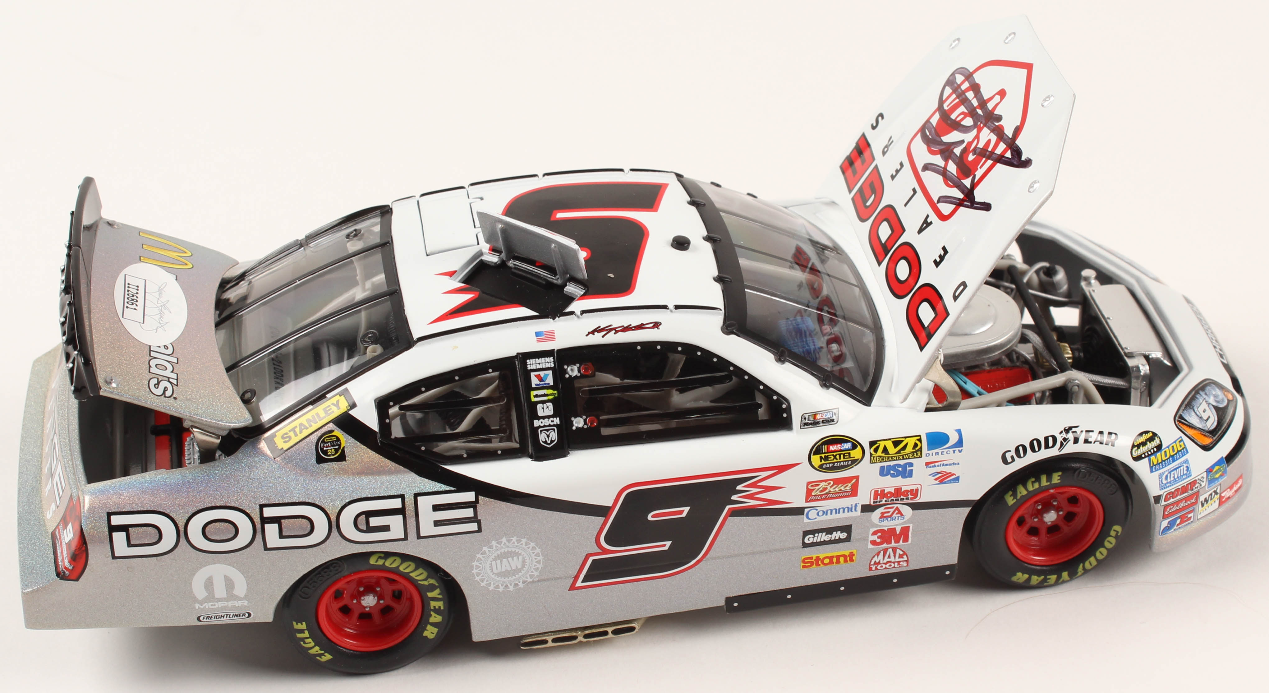 Limited edition #9 Dodge Dealers 2007 Charger Mesma Chrome 1:24 Die-Cast Car. Hand-signed in black felt-tip pen by Kasey Kahne.