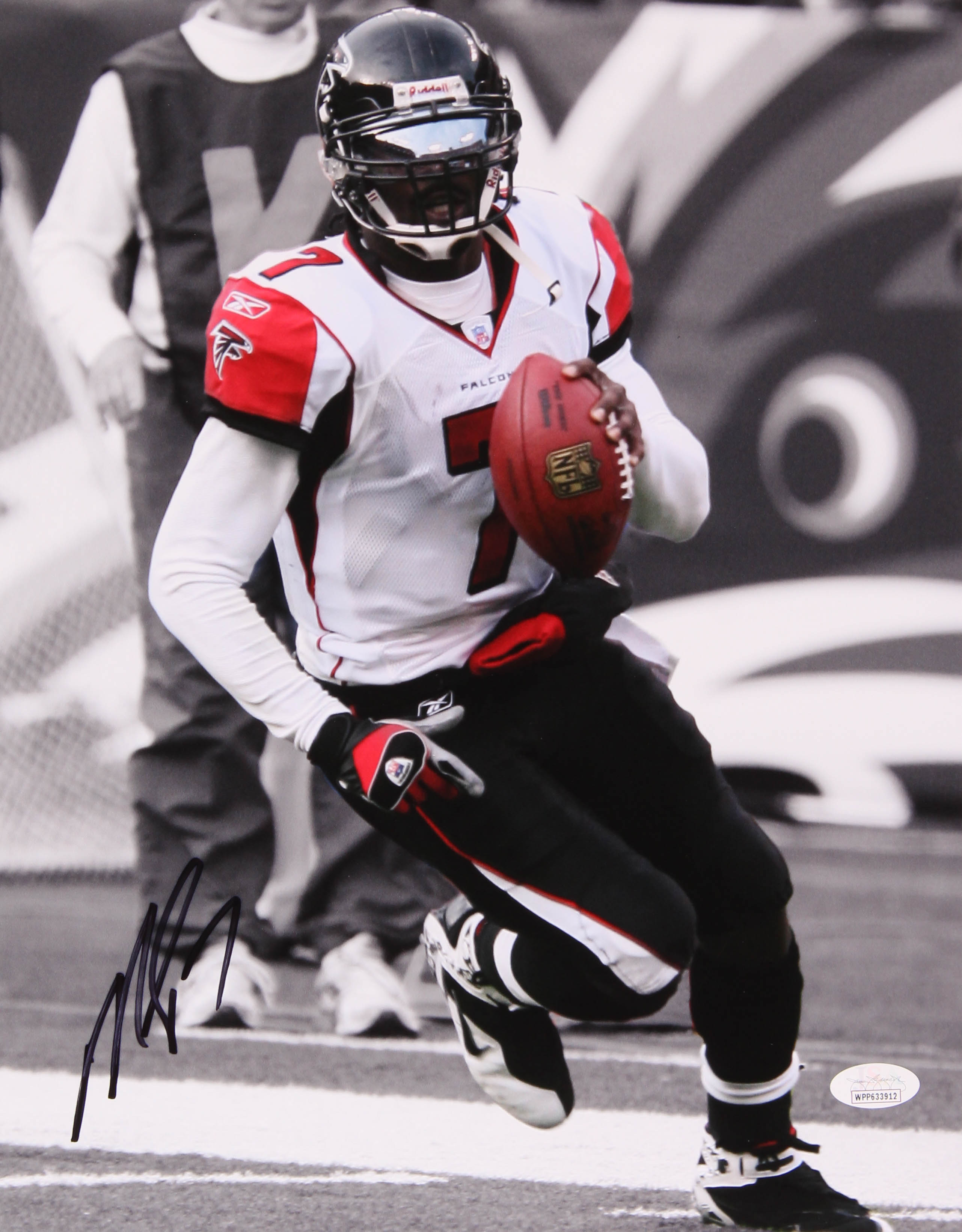 Photo measures 11" x 14" in size and has been hand-signed in black felt-tip pen by Michael Vick (Atlanta Falcons).