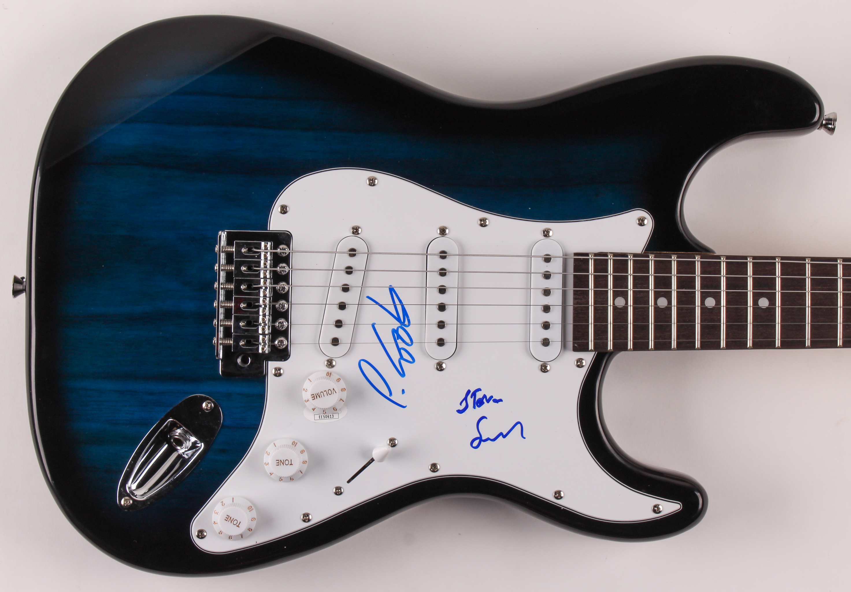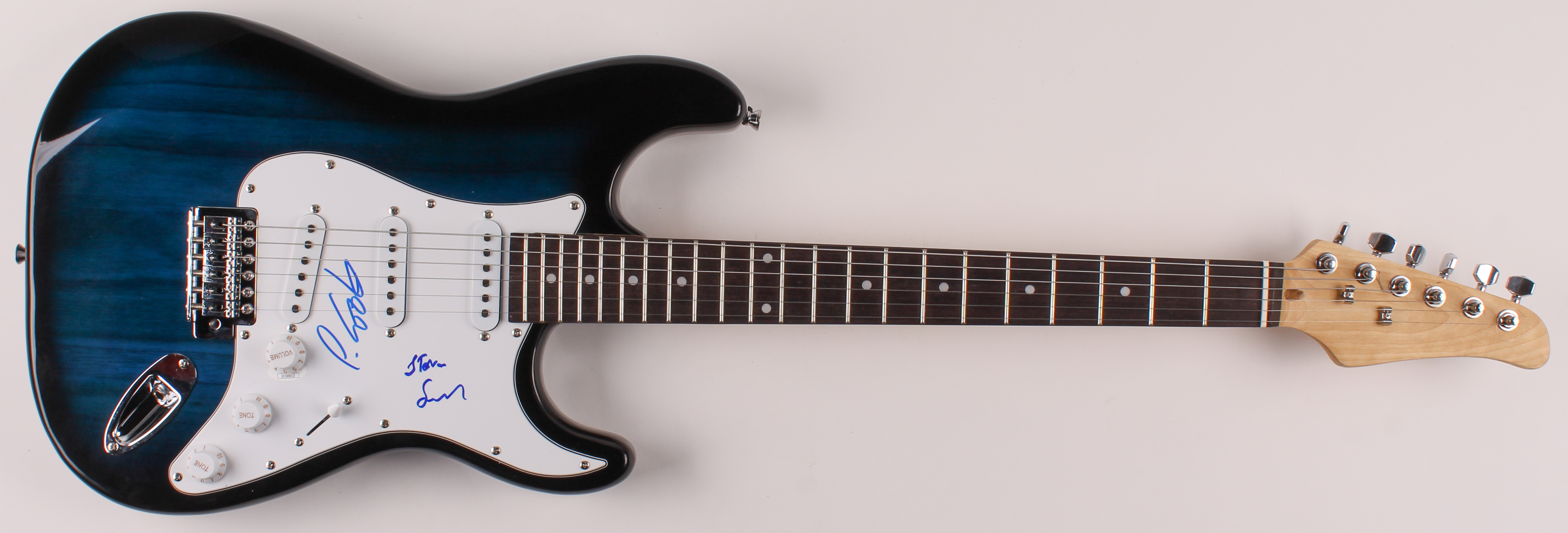 39" electric guitar is hand-signed on the pick-guard in black felt-tip pen by Steve Jones and Paul Cook. Please see photos for details regarding the condition of the guitar.