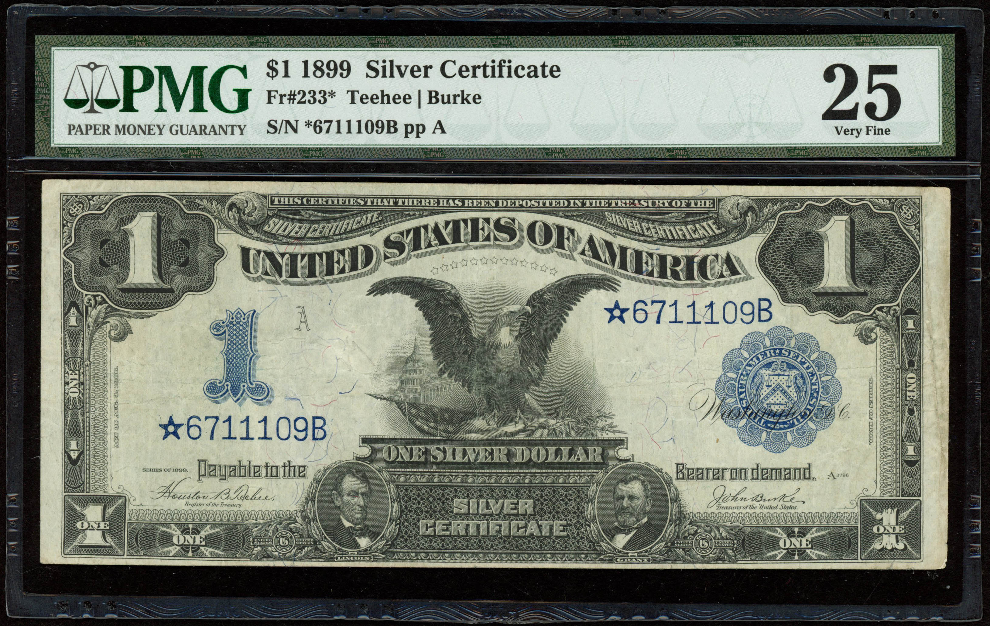 Star Note - 1899 $1 One-Dollar "Black Eagle" U.S. Silver Certificate Large-Size Bank Note (PMG 25)