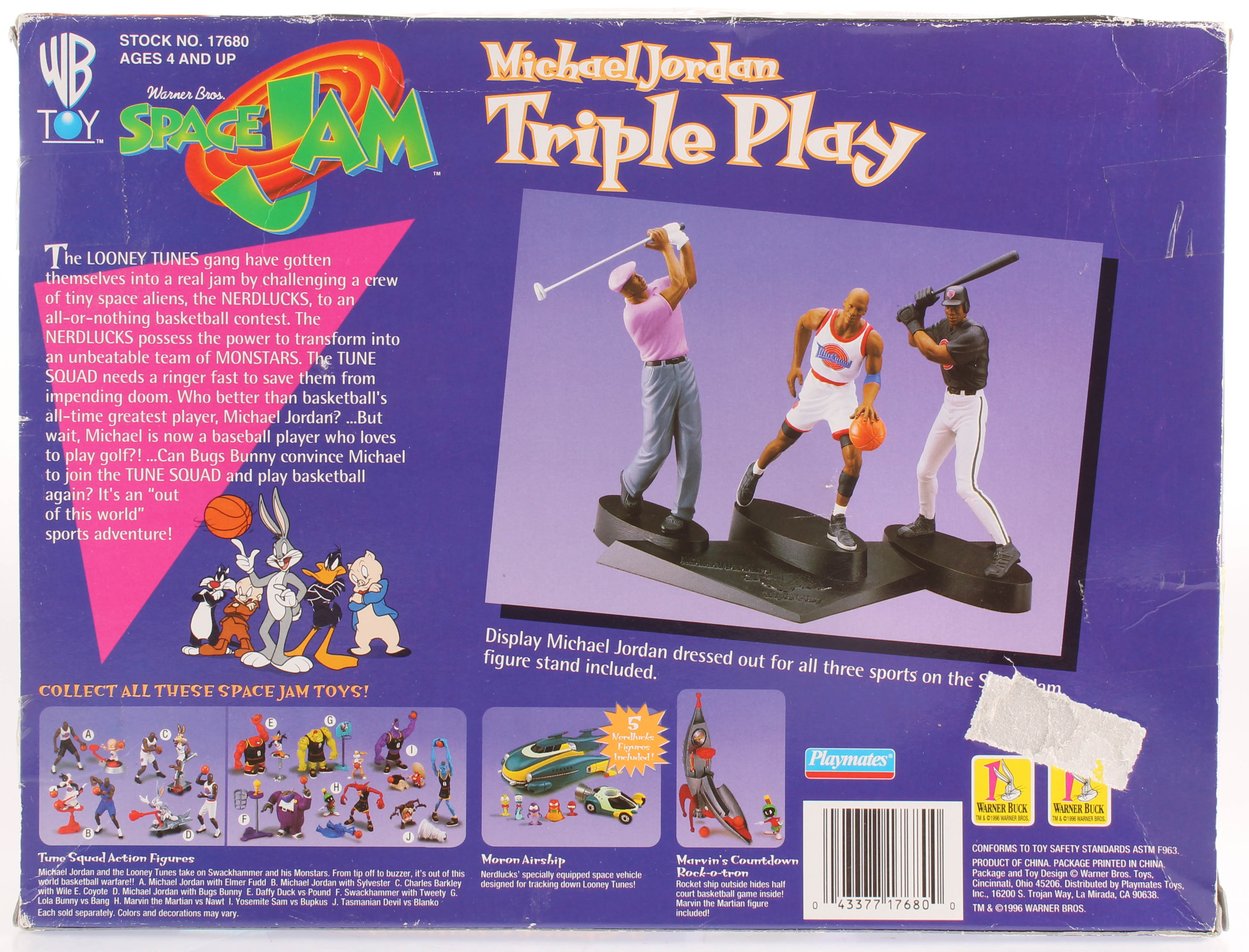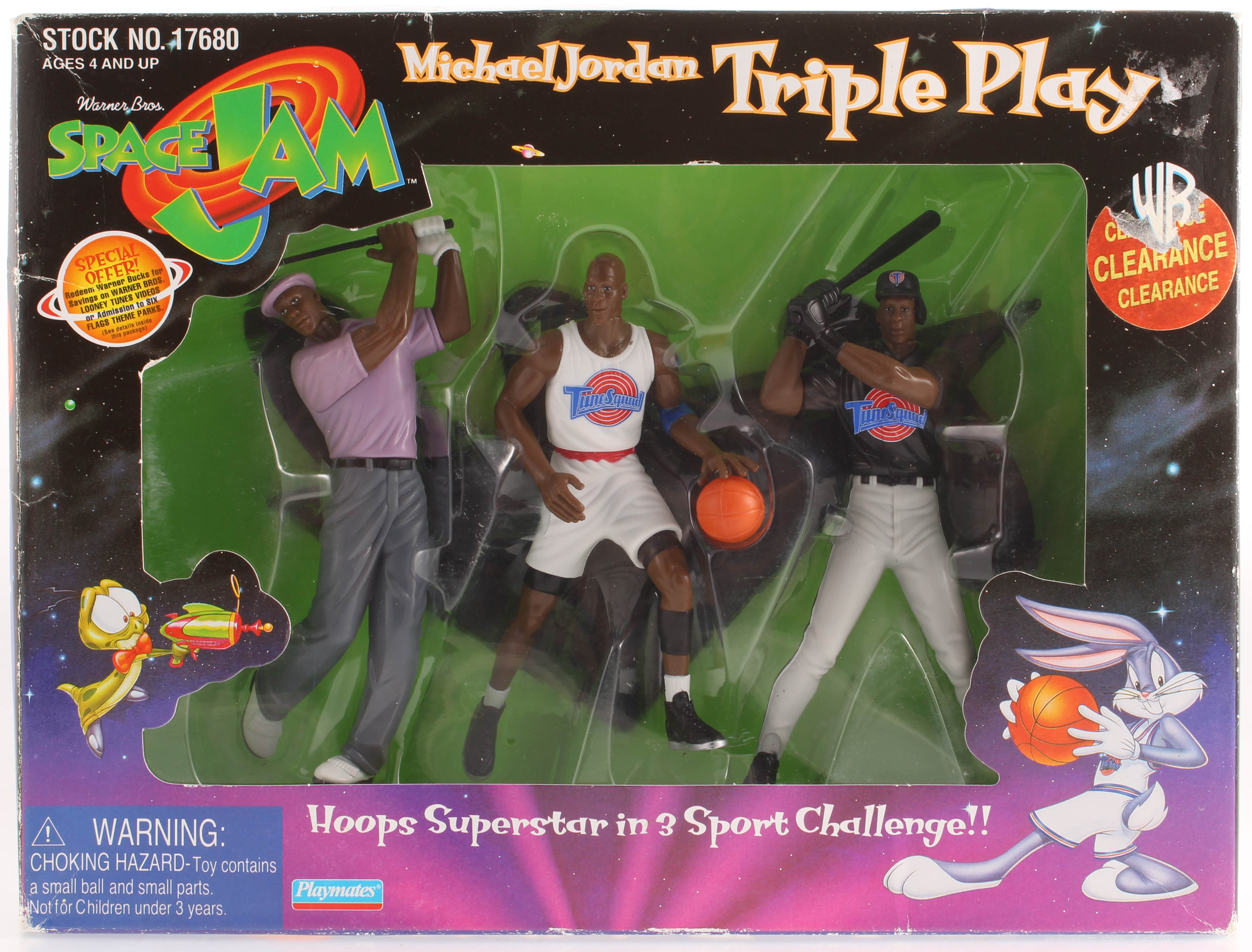 Playmates Michael Jordan "Space Jam" Triple Play action figure set. Figures measure approximately 5.5" in height. Includes original packaging as shown. Please see photos for details regarding the condition of the set.