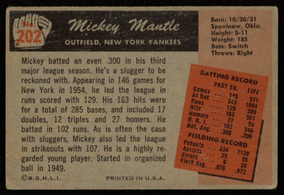 Mickey Mantle 1955 Bowman #202