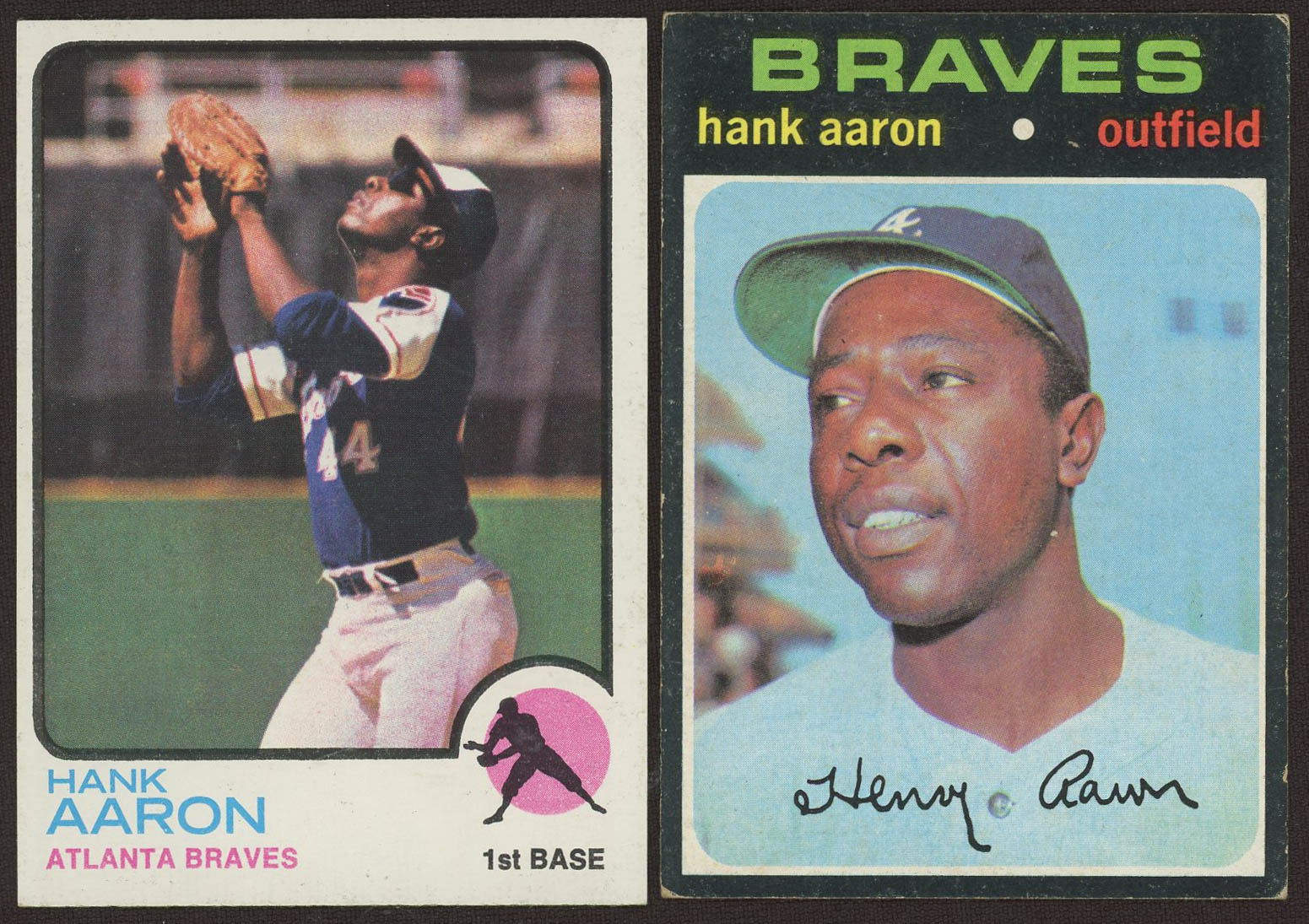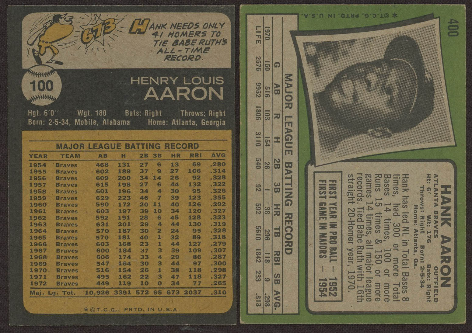 Lot of (2) Hank Aaron Baseball Cards with 1973 Topps #100 & 1971 Topps #400