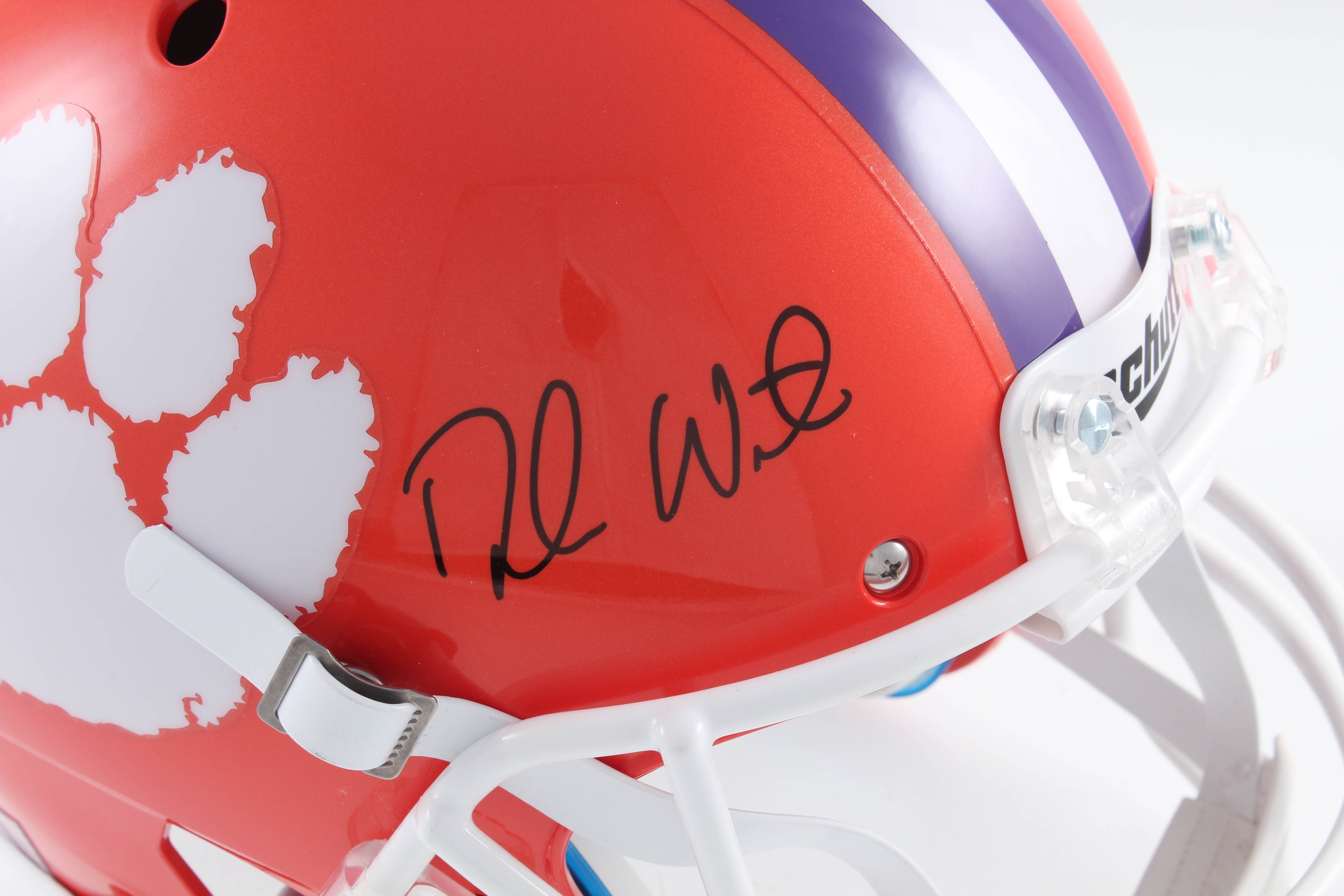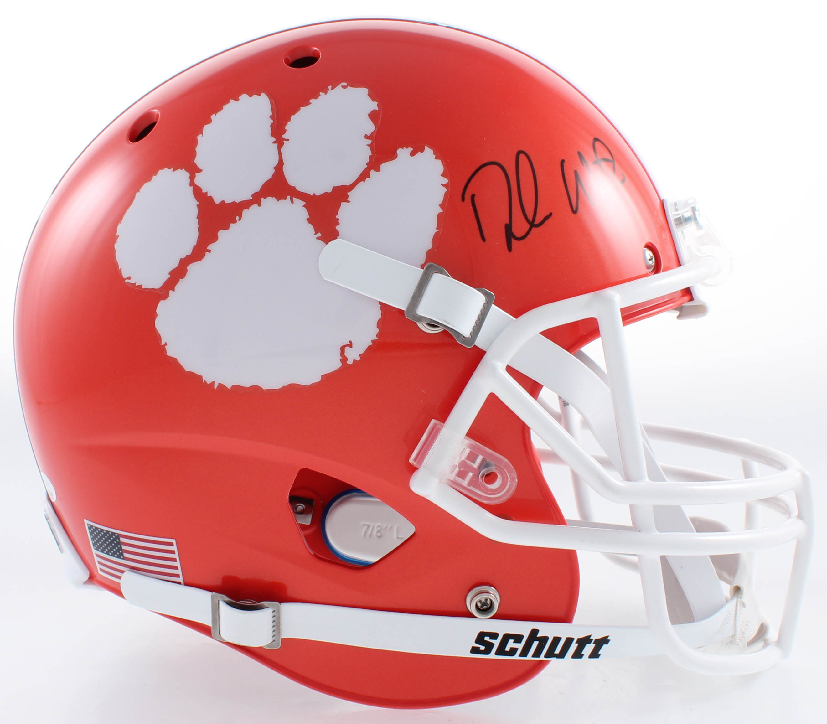 Schutt Clemson Tigers full-size replica helmet has been hand-signed in black felt-tip pen by Deshaun Watson.