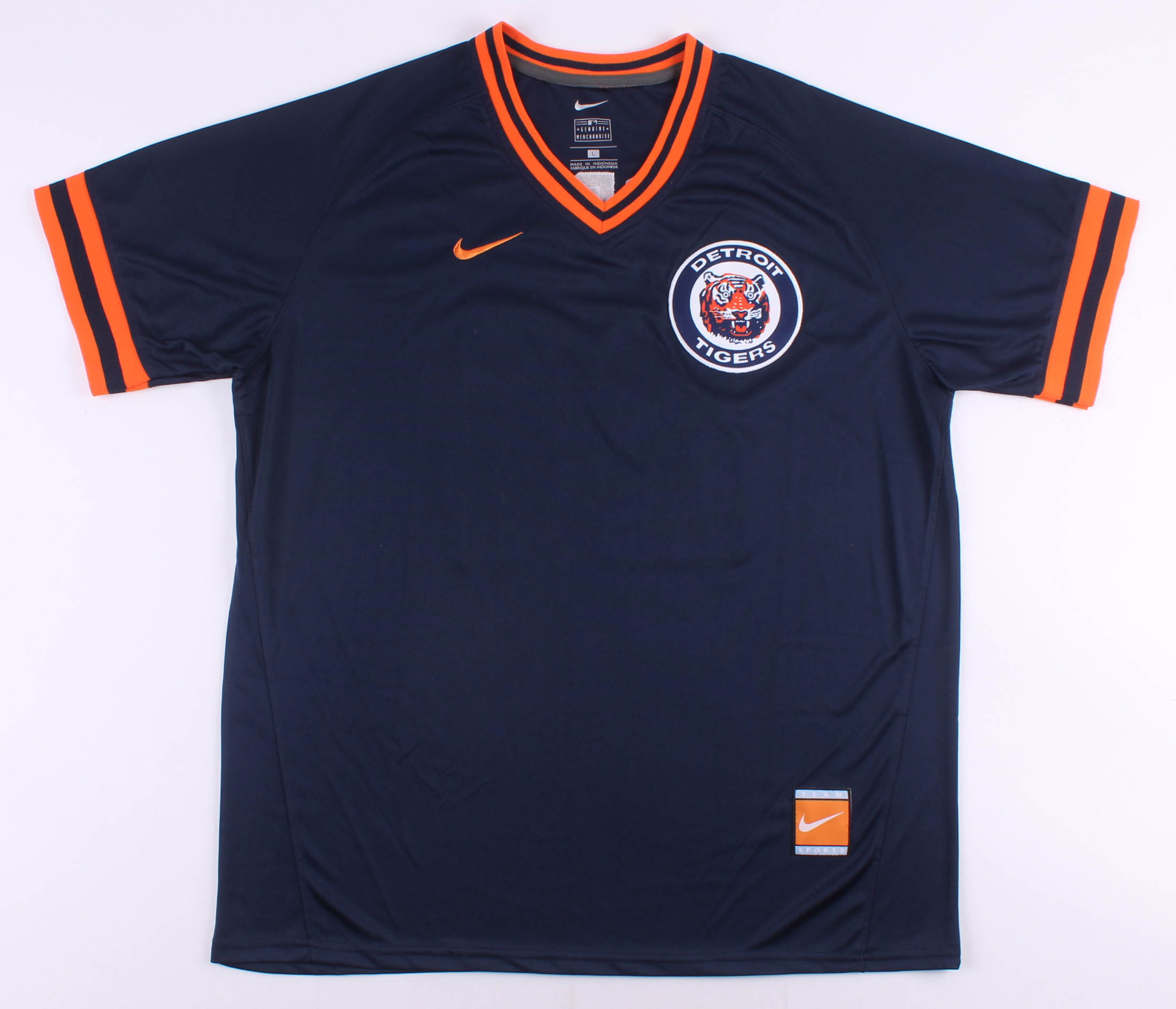 Nike on-field style jersey. Everything is sewn on, size L. Has been hand-signed in black felt-tip pen by Miguel Cabrera (Detriot Tigers).