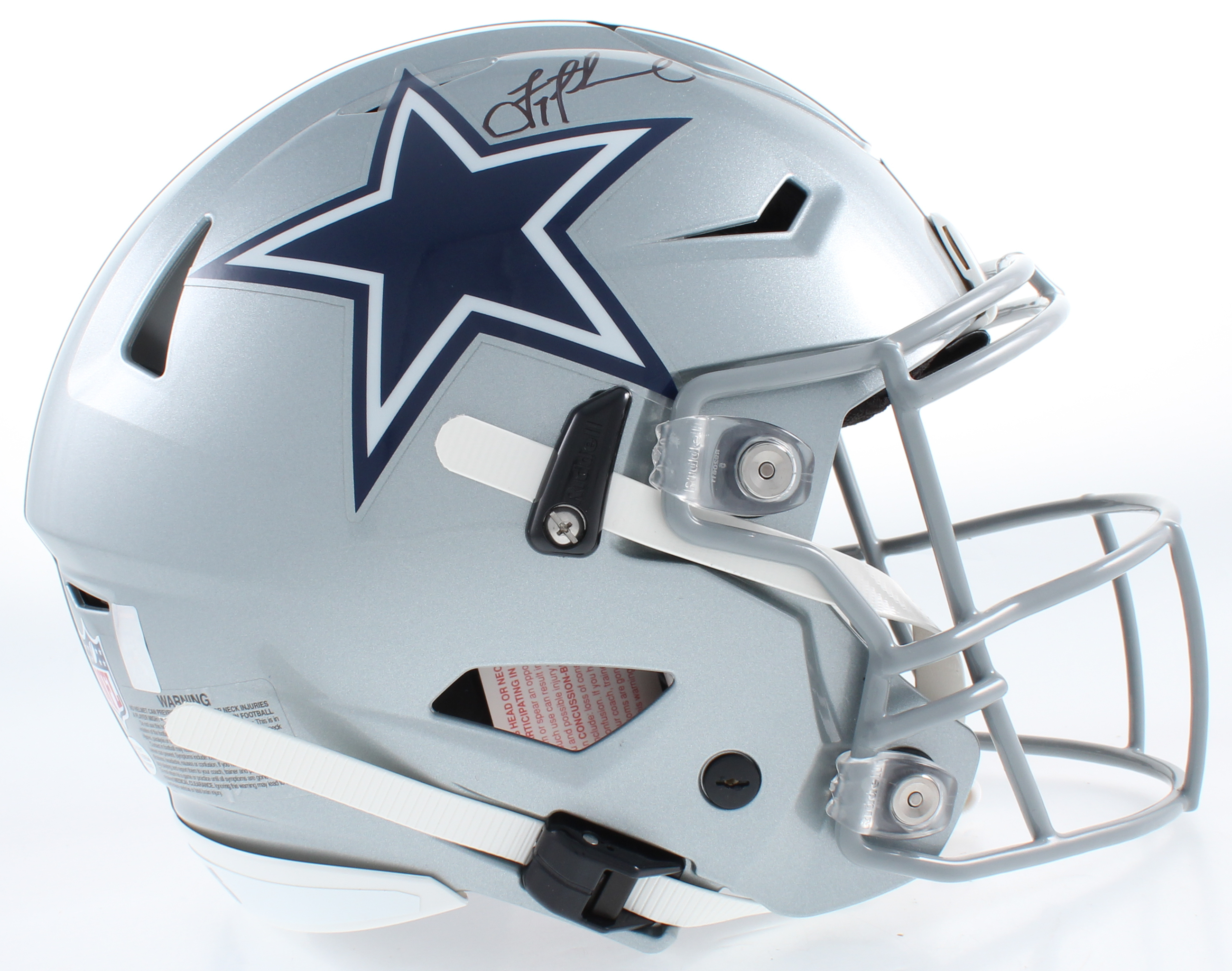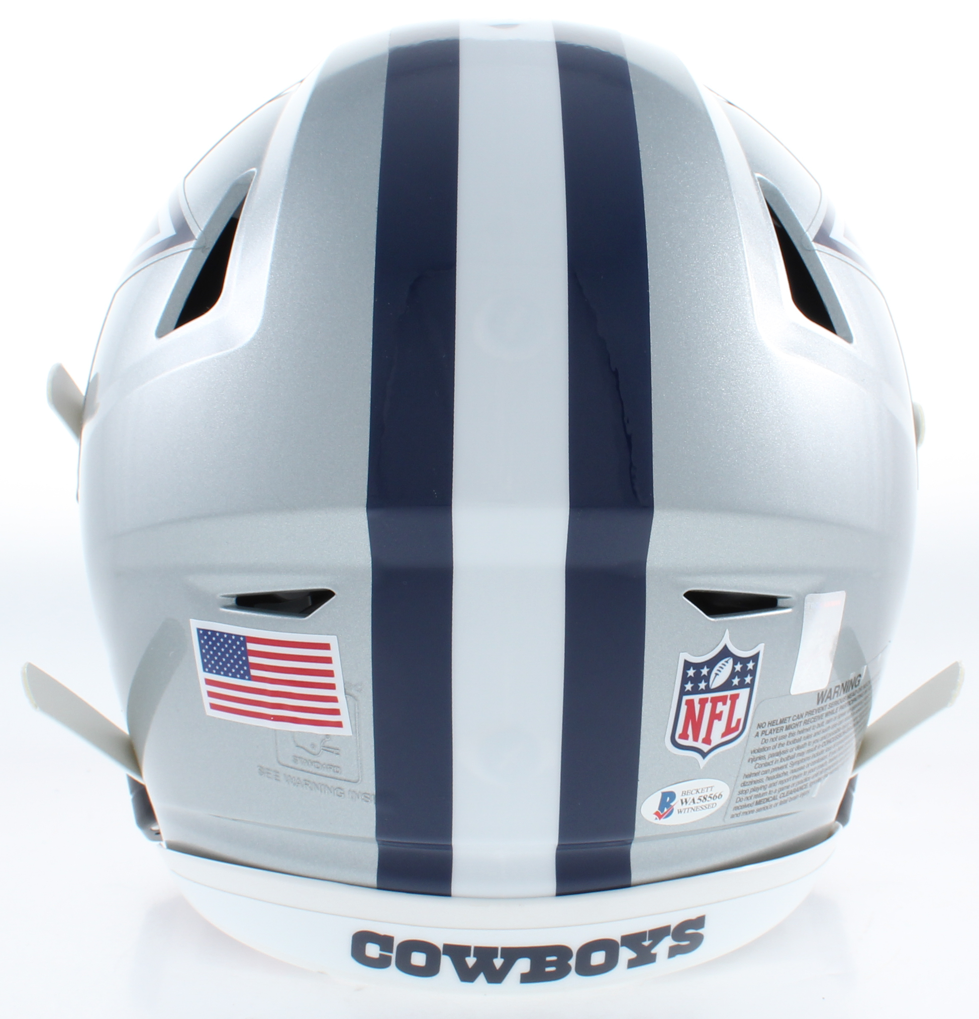 Riddell Dallas Cowboys full-size authentic on-field speedflex helmet has been hand-signed in black felt-tip pen by Troy Aikman (HOF).