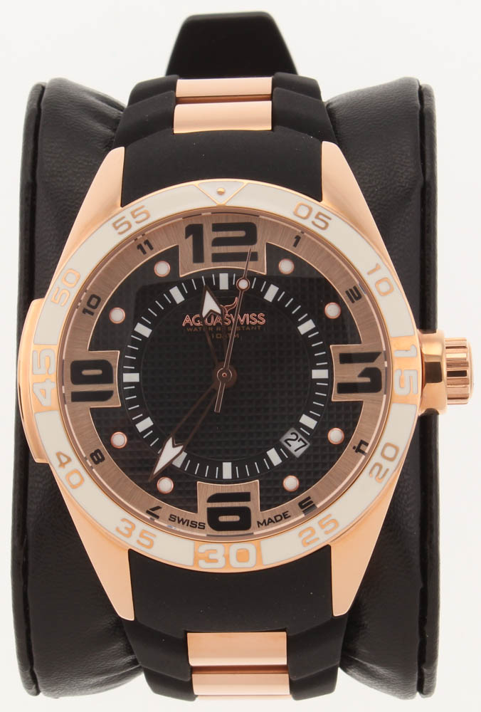 Introducing the AQUASWISS Collection, stunning watches that can be worn for sport, casual, or dress. All AQUASWISS timepieces are water resistant up to 10 ATM (330 feet). All AQUASWISS watches come with Swiss movements. This AQUASWISS watch is BRAND NEW and comes in its original box with owners manual and 2 year warranty (from Manufacturer). AQUASWISS watches are truly high-quality timepieces. (All weights, measurements, and colors are approximate and may vary slightly from the listed dimensions or as seen in the image).