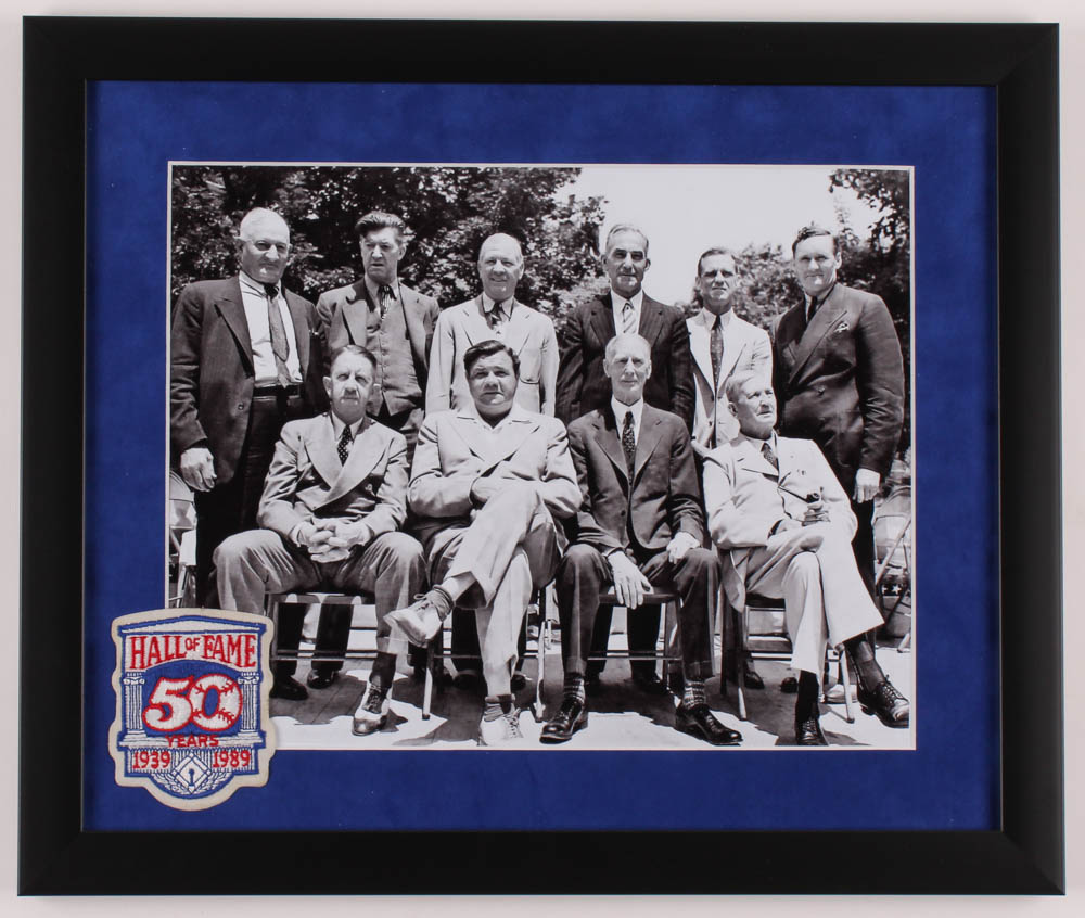 MLB Hall of Fame Inaugural Class 16x19 Custom Framed Photo with Vintage Hall of Fame Patch