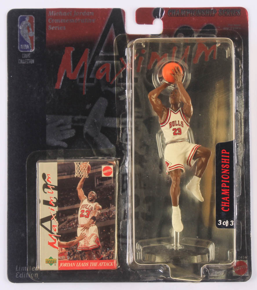 Michael Jordan Air Maximum Hoop Highlight action figure measures approximately 6" in height. Includes original packaging and sealed basketball card as shown.