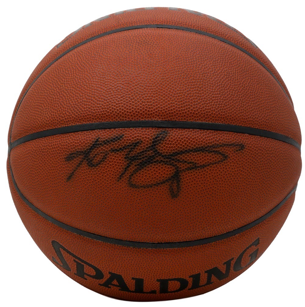 Spalding all-purpose surface basketball. Hand-signed in black felt-tip pen by Kobe Bryant (D. 2020, Los Angeles Lakers).