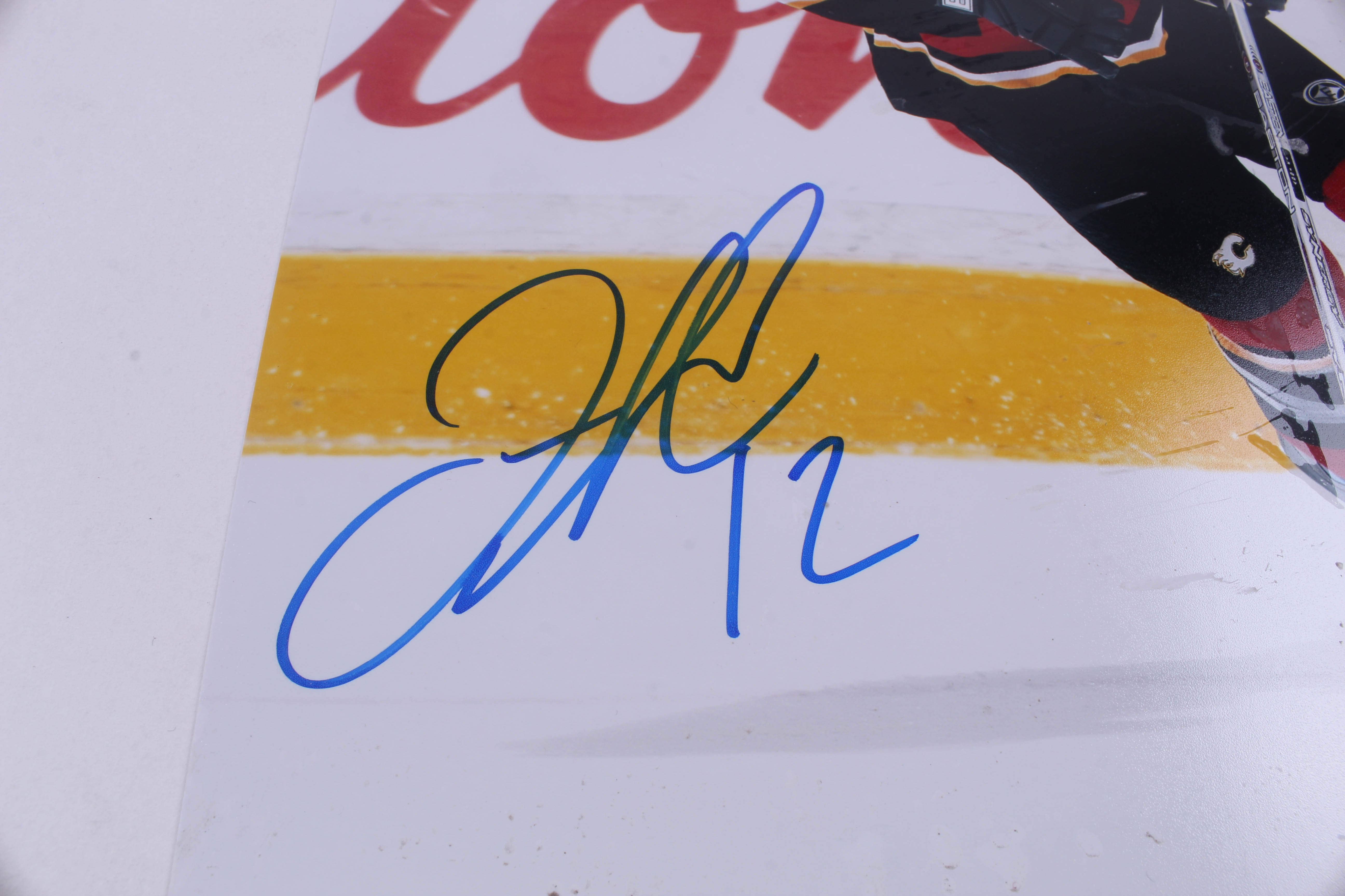 Photo measures 11" x 14" in size and has been hand-signed in blue felt-tip pen by Jarome Iginla (Calgary Flames).