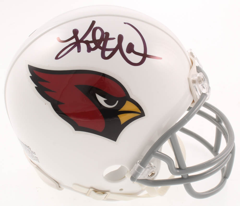 Riddell Arizona Cardinals mini helmet. Hand-signed in black felt-tip pen by Kurt Warner (HOF).