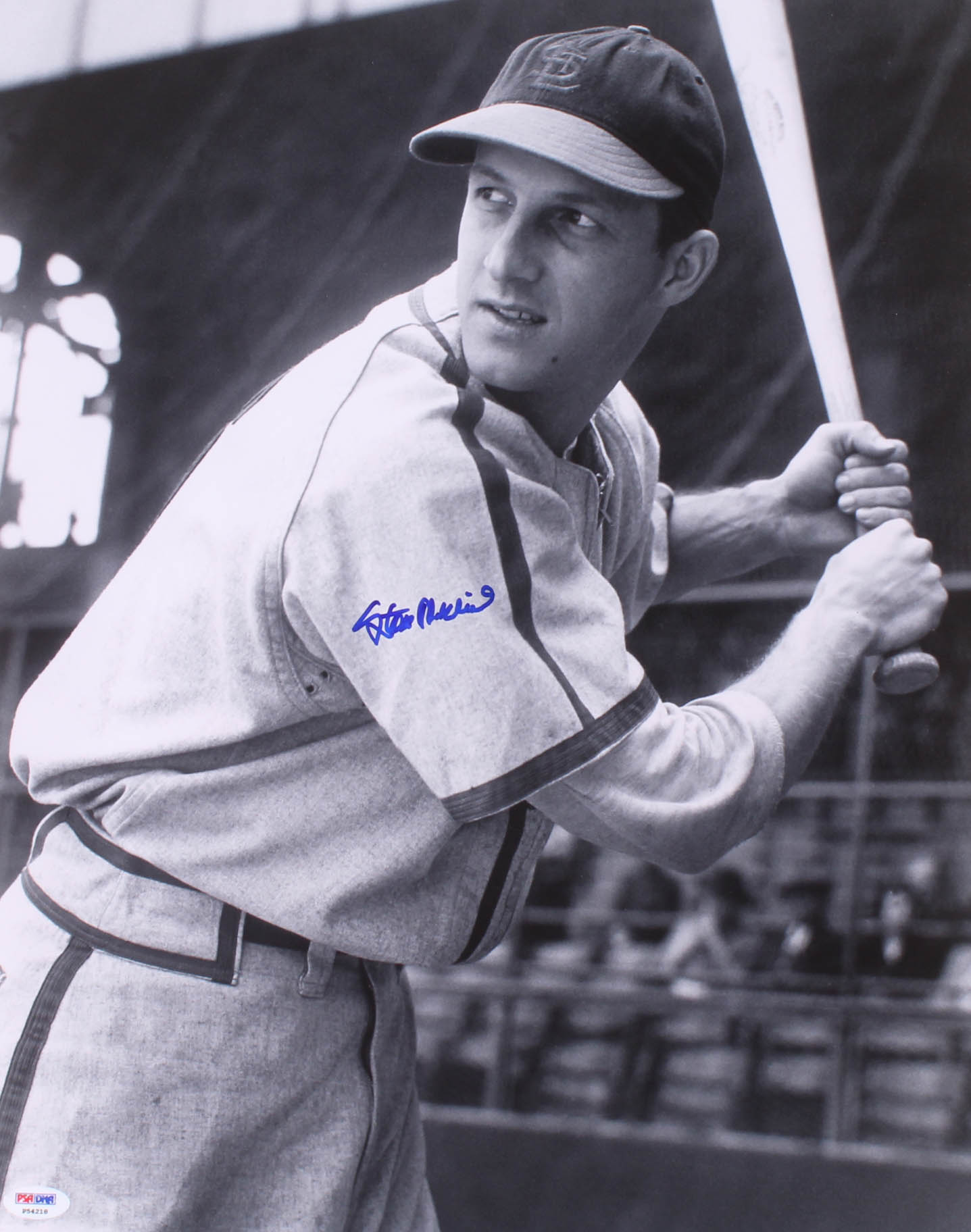Photo measures 16" x 20" in size and has been hand-signed by Stan Musial (D. 2013, St. Louis Cardinals, HOF).