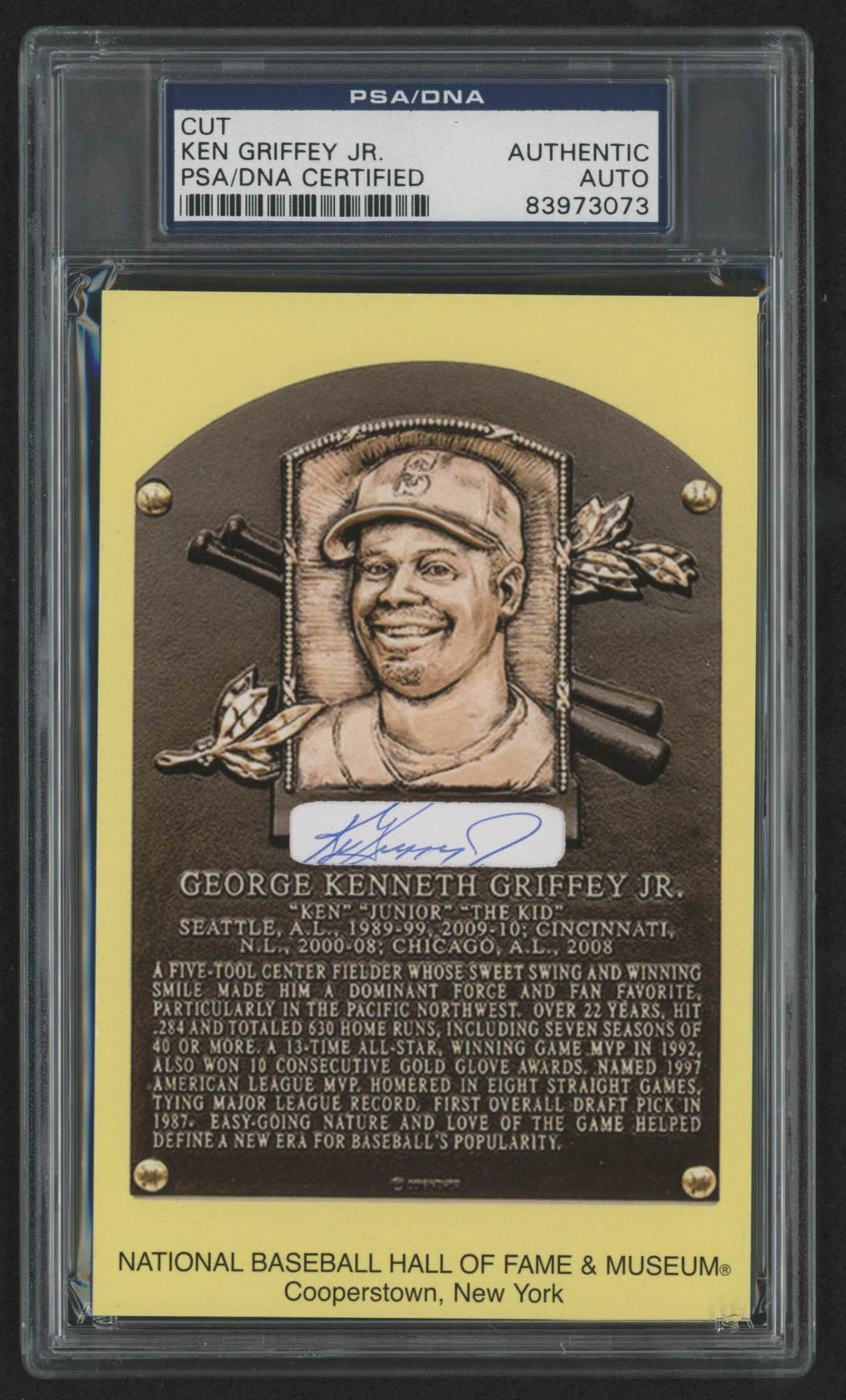 Ken Griffey Jr. Signed Hall of Fame Plaque Postcard (PSA Encapsulated)