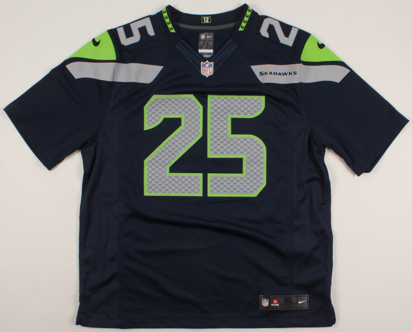 Nike on-field style jersey, everything printed on, size XL. Hand-signed in black felt-tip pen by Richard Sherman (Seattle Seahawks).