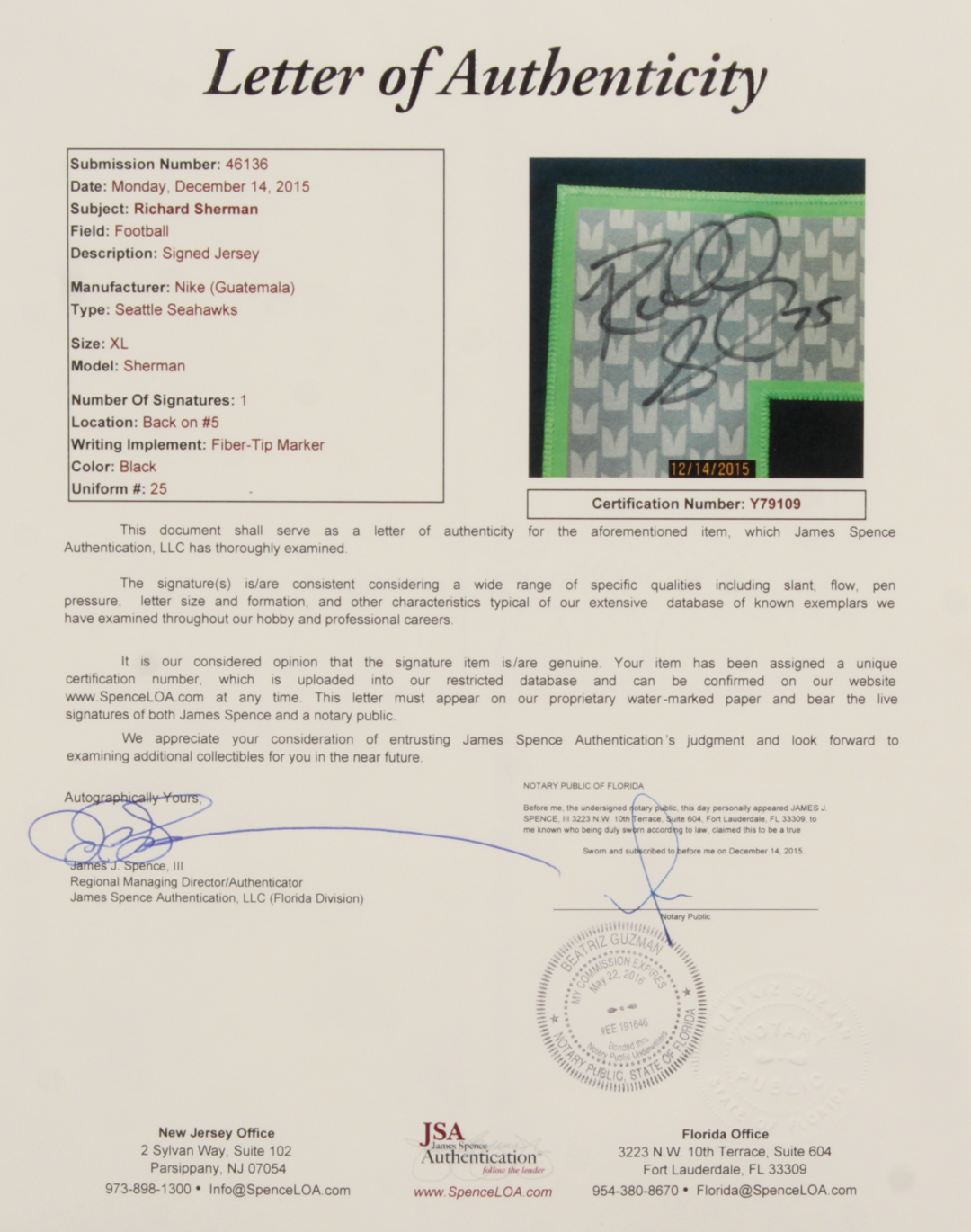 Richard Sherman Signed Seahawks Jersey (JSA LOA)
