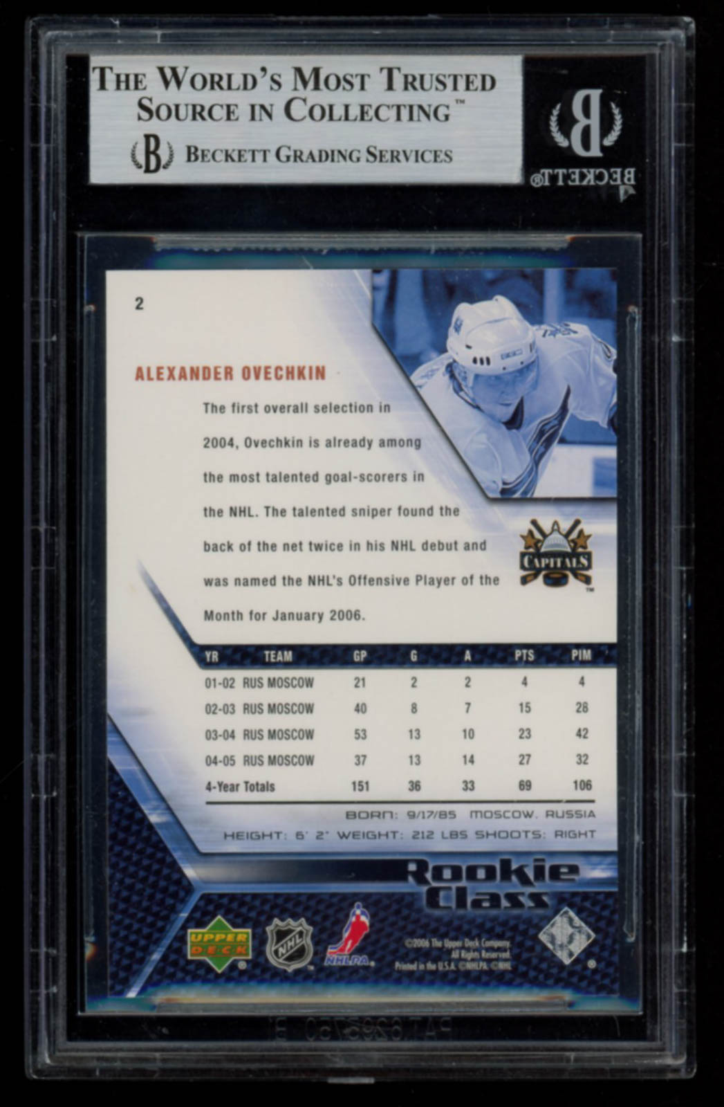 Alexander Ovechkin 2005-06 UD Rookie Class #2 RC (BGS 9)