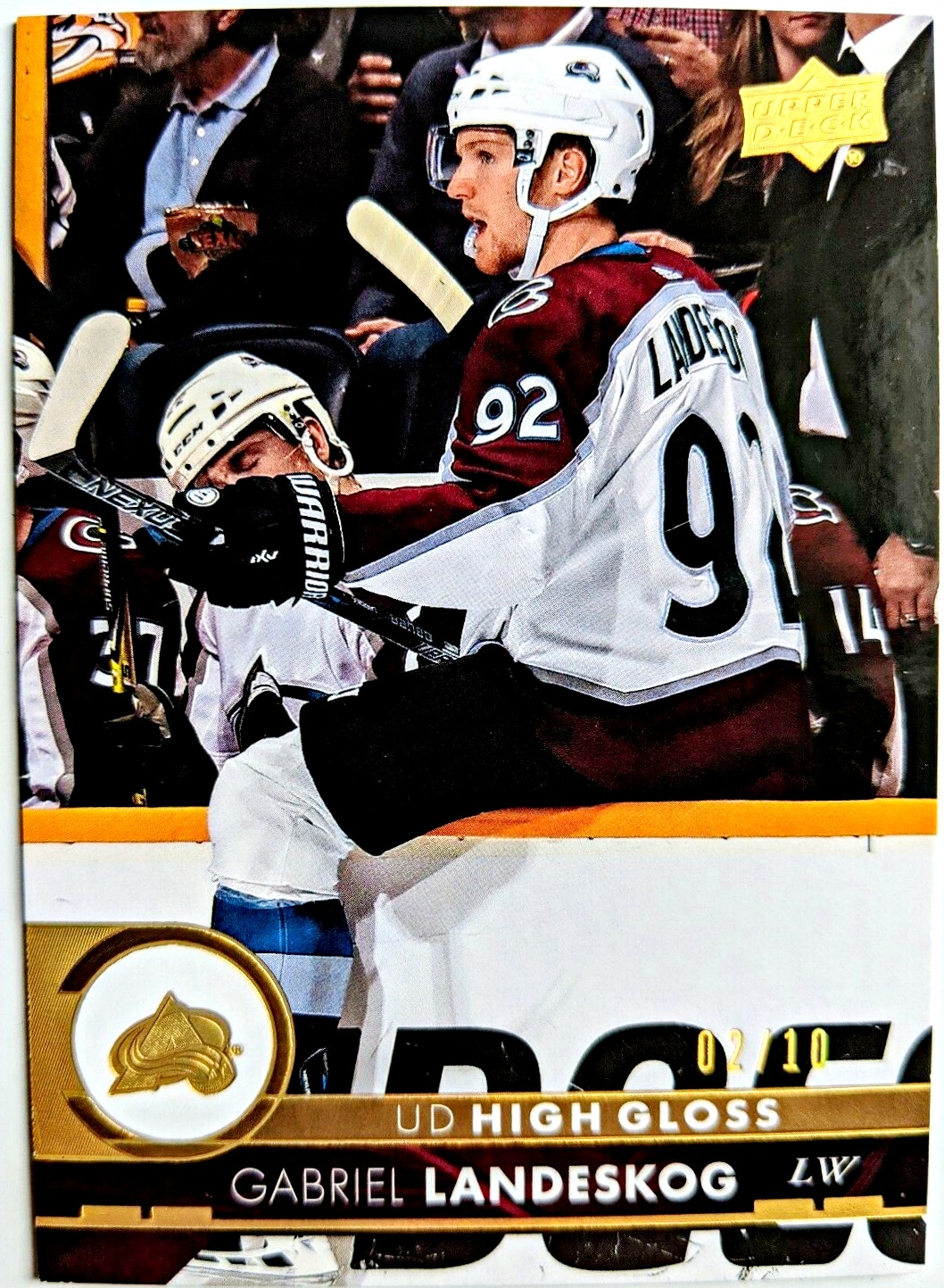 Among the most rare inserts in the 2017-18 Upper Deck Series 2 checklist, Fluorescence showcases Spectrum Light FX technology for colored versions like Gold (#/150), Blue (#/50), Green (#/10), and Magenta (#/5). Celebrating the Pittsburgh Penguins as Stanley Cup champions, the Day with the Cup SSP is back as well.