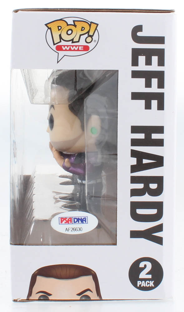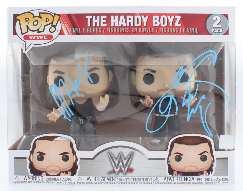 Funko Pop! vinyl figure measures approximately 4" tall and is hand-signed in blue paint pen on the box by Jeff Hardy and Matt Hardy.