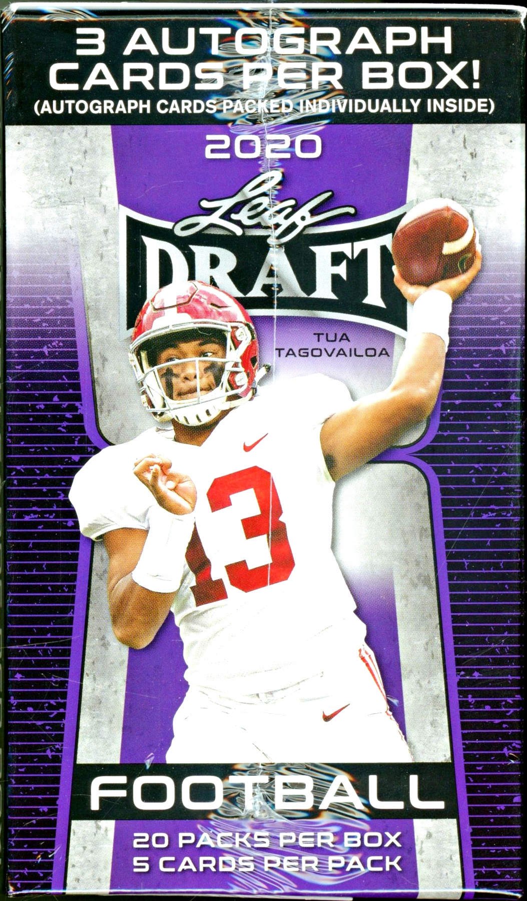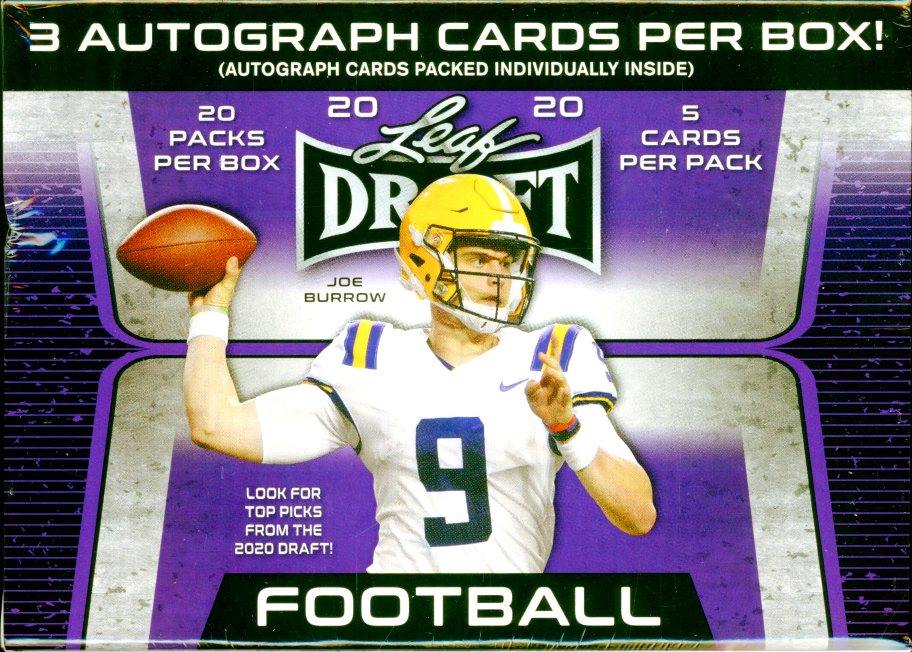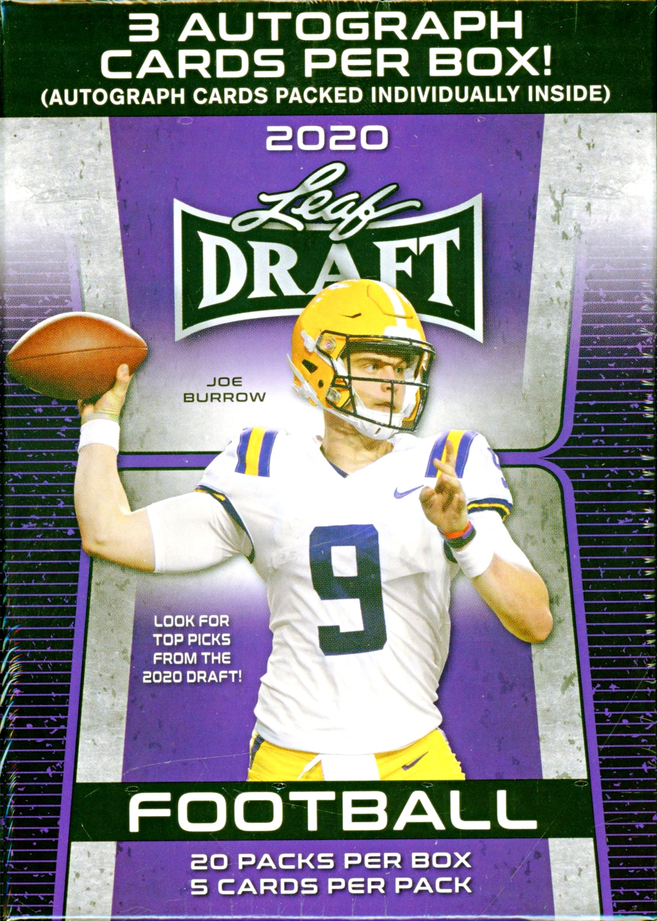 Leaf 2020 Draft Football maintains Leaf’s commitment to bringing the hottest prospects to the hobby first! Each box is loaded with 20 packs and each pack has 5 cards for a total of 100 cards per box!