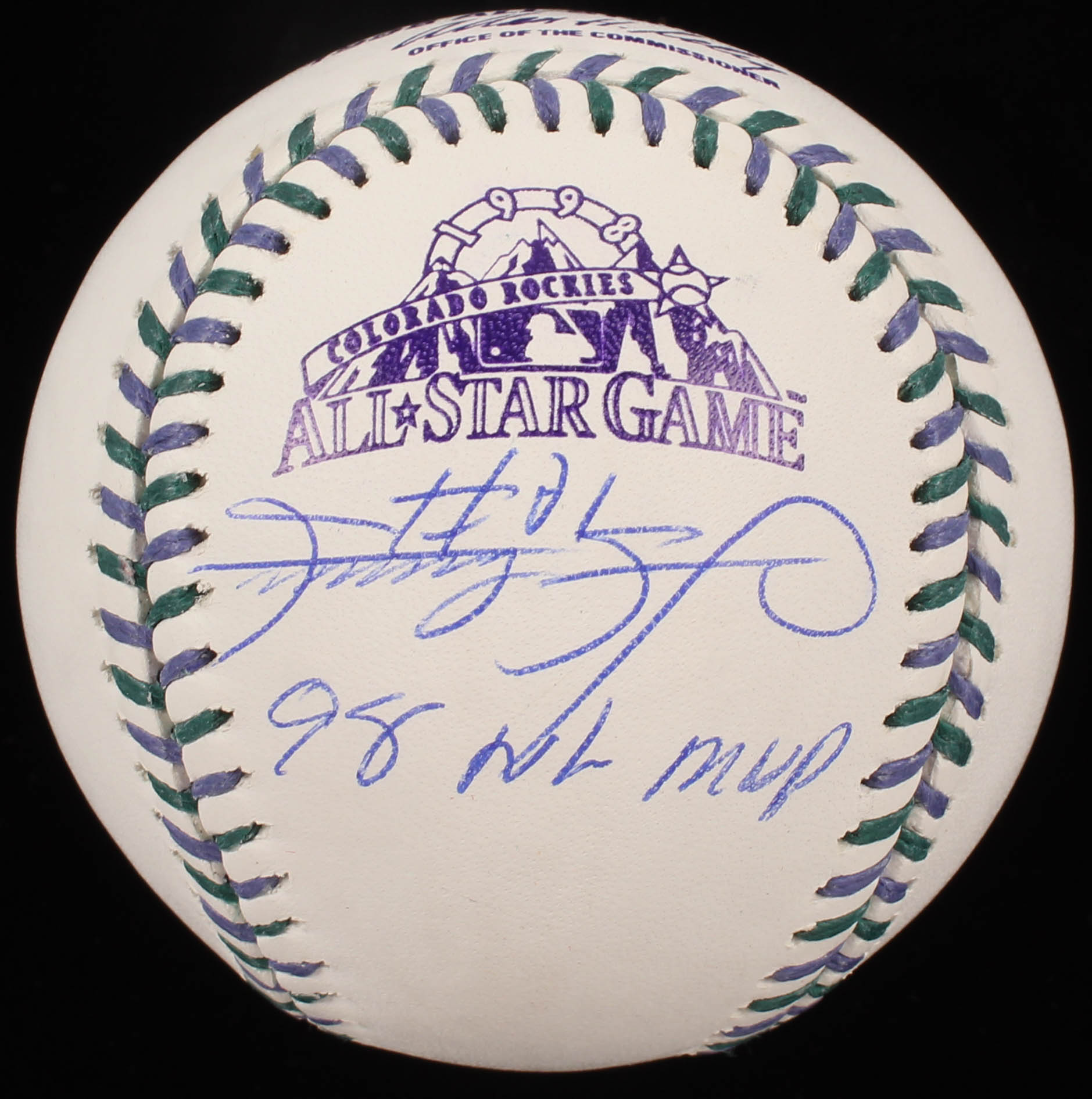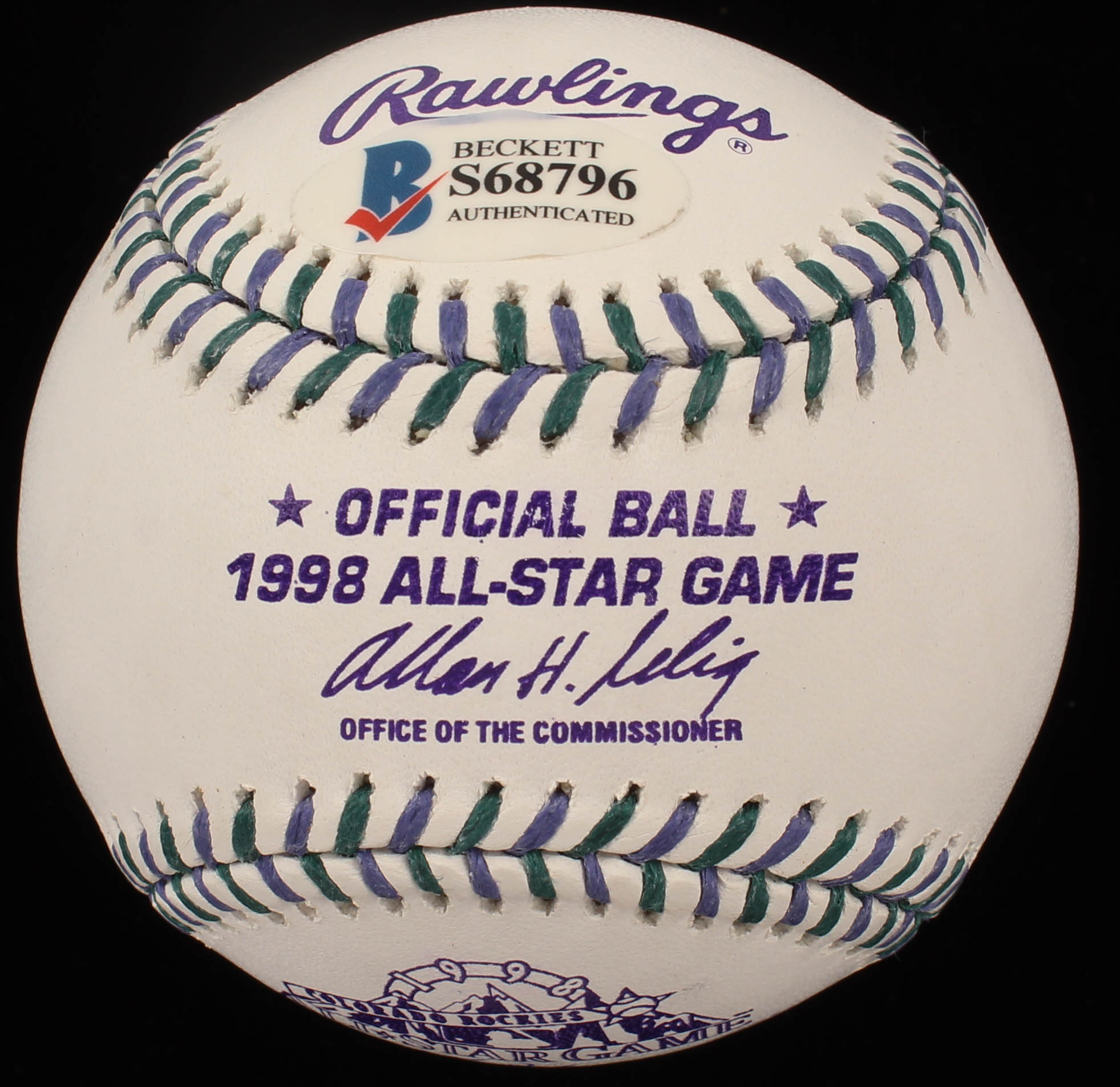 Rawlings 1998 All-Star Game Baseball. Hand-signed in blue ink pen by Sammy Sosa (Chicago Cubs).