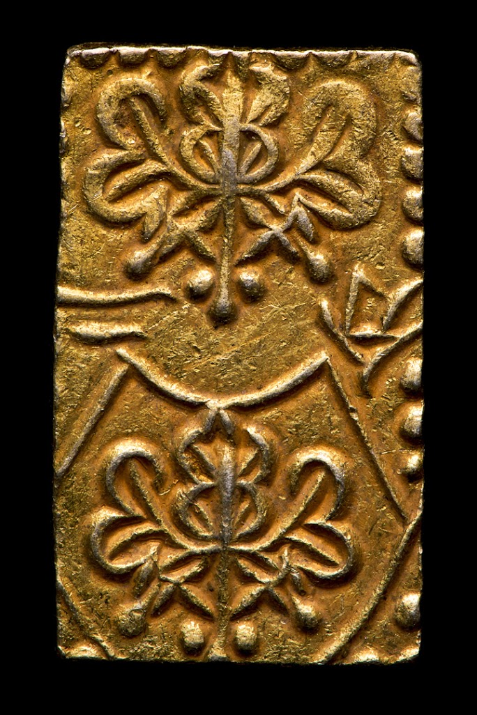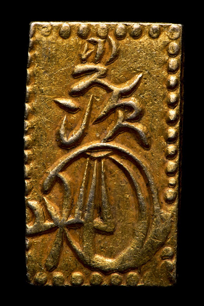 Minted from the early 17th century until just after the fall of the Tokugawa shogunate in 1869. Feudal Japanese gold coins are remnants of a time when Japan was still largely agrarian, feudal and isolated. At this point in its history, Japan was ruled by traditional samurai lords who had cultivated their warrior philosophy for more than a millennium. The Japanese word for silver is "gin" and their word for gold is "kin". Therefore, a one bu silver coin would be called an ichibu gin, which translates as "one-bu silver". Likewise, a similar one bu coin in gold would be called an ichibu kin, or "one-bu gold". Most Tokugawa period Japanese gold coins available in the market today are smaller one (ichi) or two (ni) shu or bu denominations. These coins are called isshu-kin (one-shu gold), nishu-kin (two-shu gold), ichibu-kin (one-bu gold) and nibu-kin (two-bu gold), respectively. These smaller shu and bu Japanese gold coins from the Tokugawa shogunate have an unusual rectangular shape surrounded by finely beaded borders that is reminiscent of a miniature bar or ingot. Covered in exotic Japanese calligraphy and stylized paulownia flowers, shu and bu gold coins unequivocally exude the style of traditional samurai Japan.