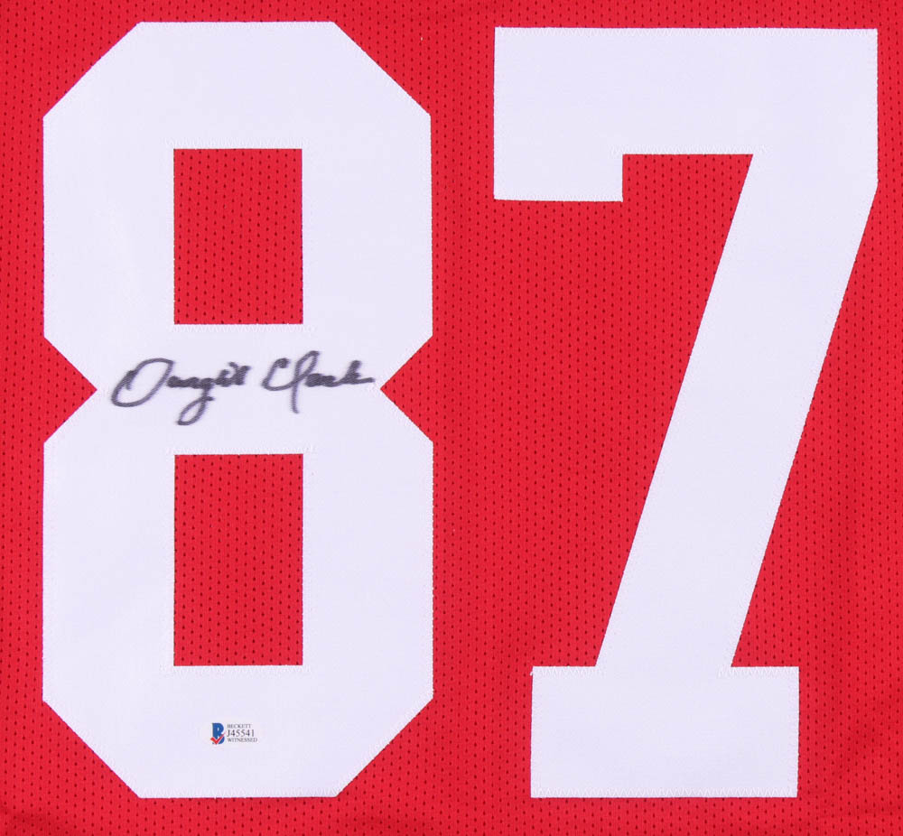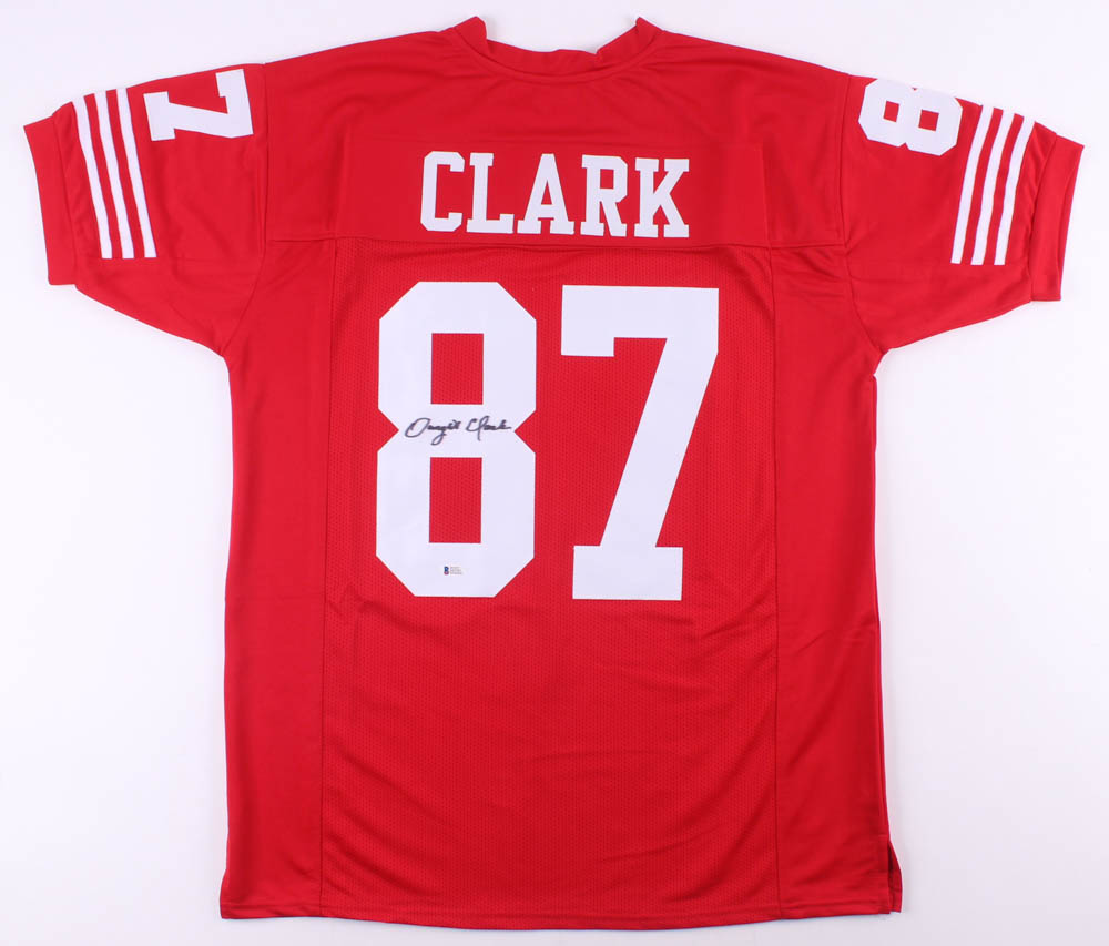 Custom on-field style jersey. Everything is sewn on, size XL. Hand-signed in black felt-tip by Dwight Clark (D. 2018).