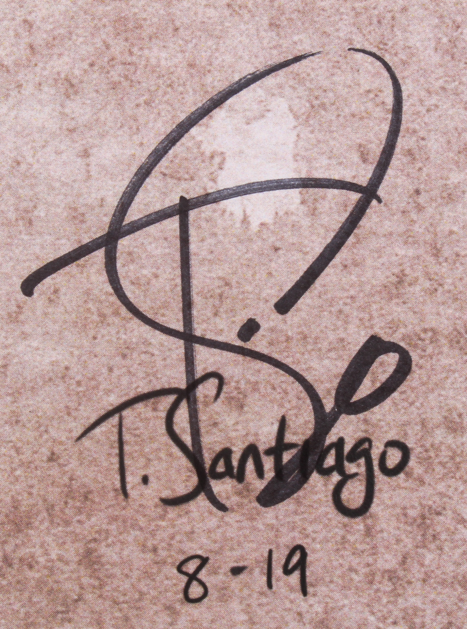 Print measures approximately 13" x 19" in size (with border). The piece is hand-signed by the artist, Tony Santiago.