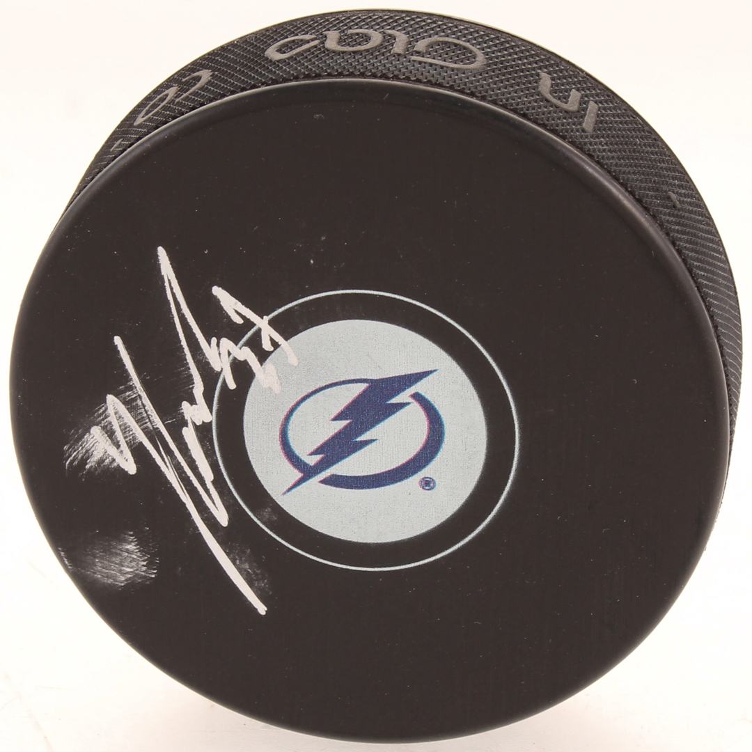 Yanni Gourde Signed Lightning Logo Hockey Puck (PSA COA)