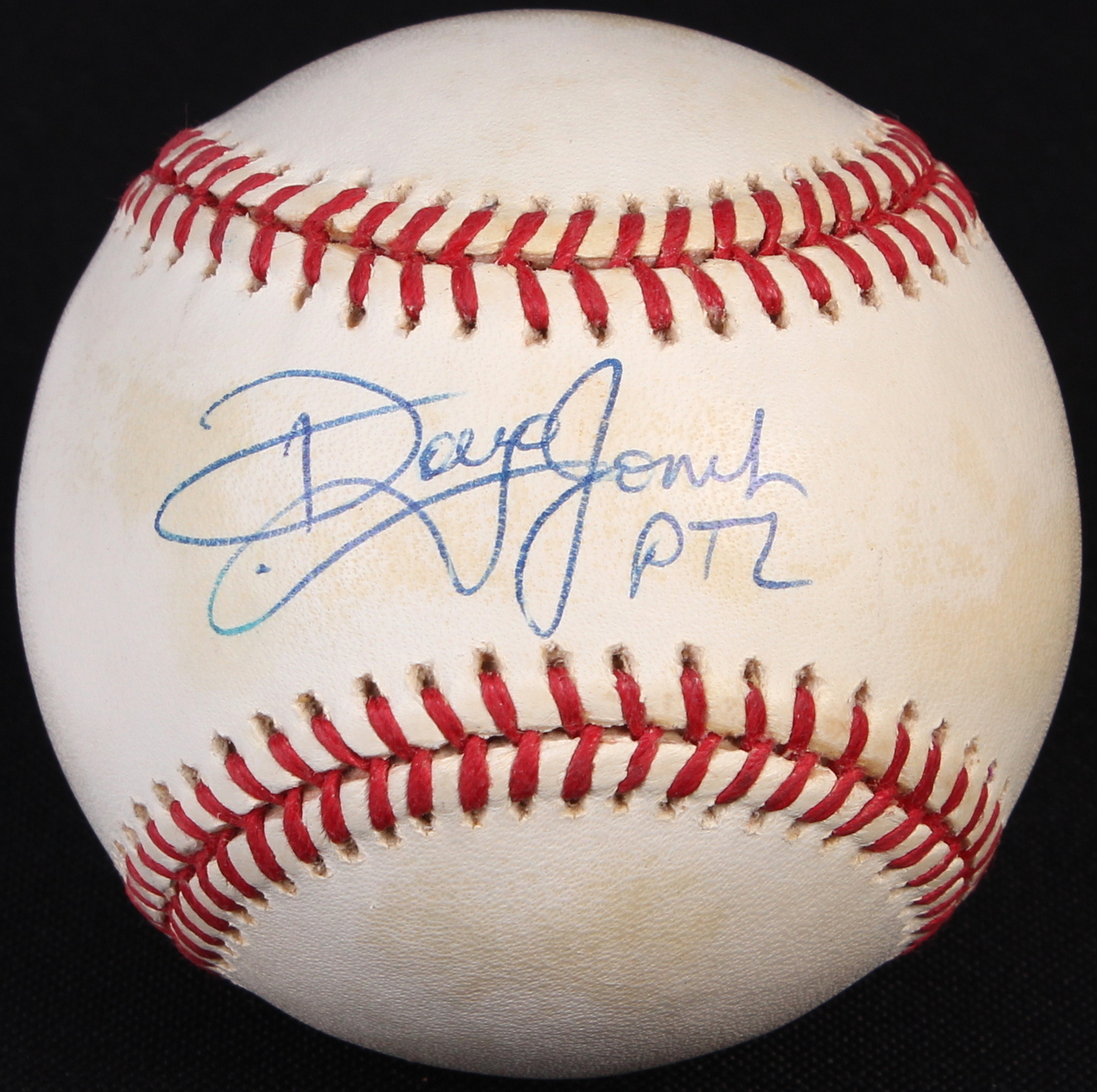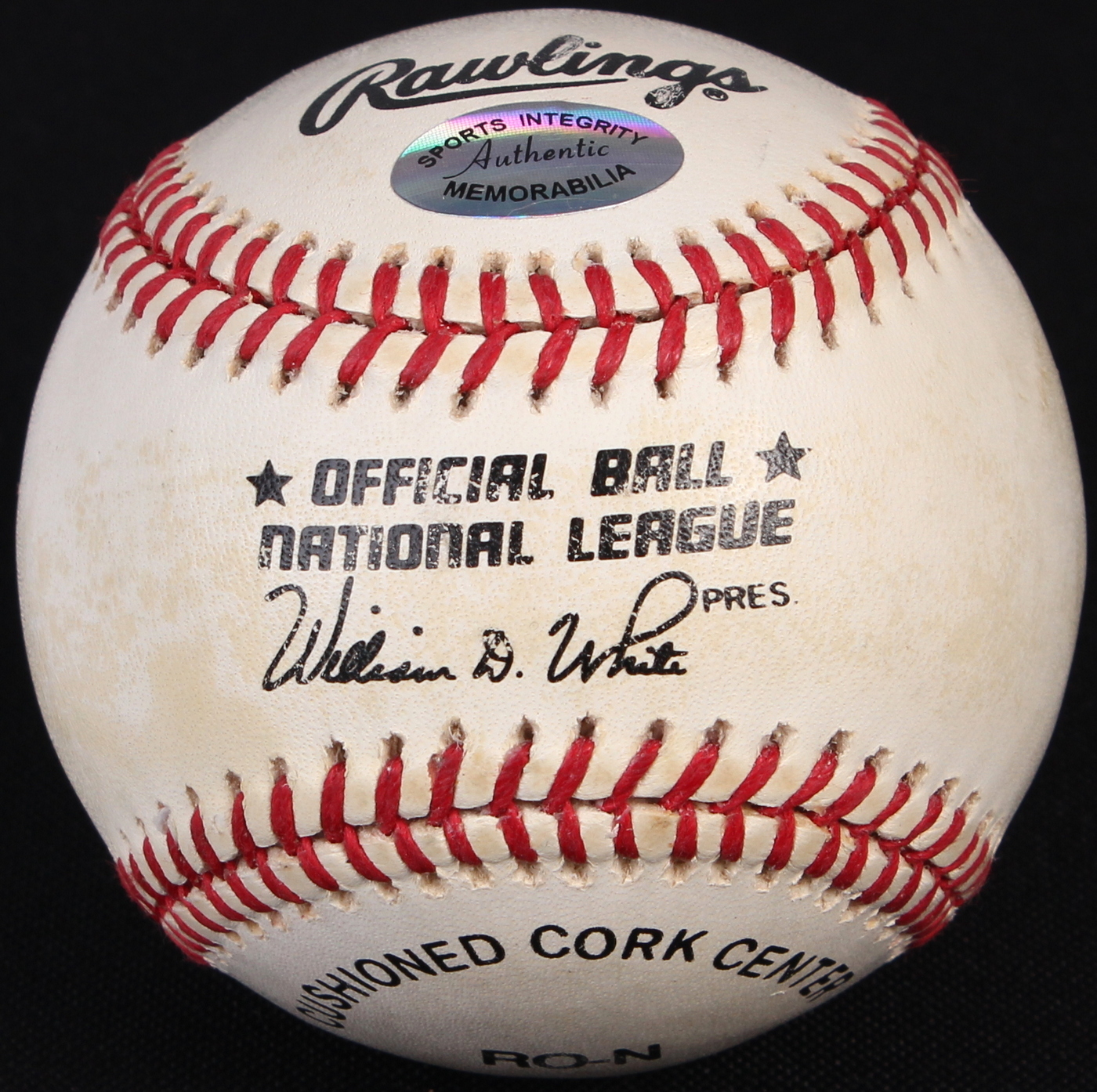 Official Nation League Baseball. Hand-signed and inscribed in blue ink by Doug Jones (Brewers). Please note, baseball shows signs of toning. The autograph includes an official Sports Integrity hologram for authenticity purposes.