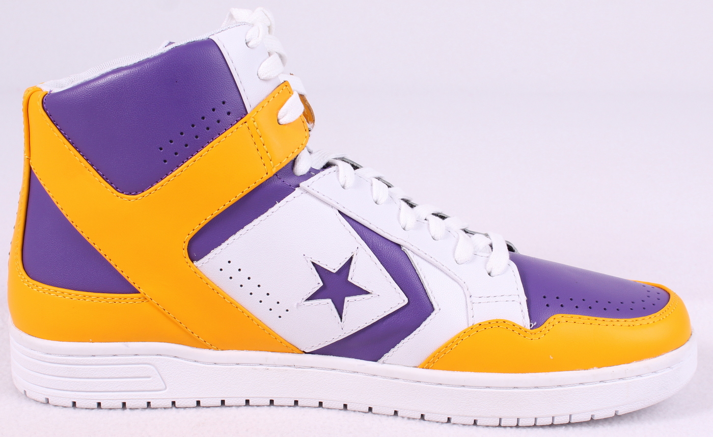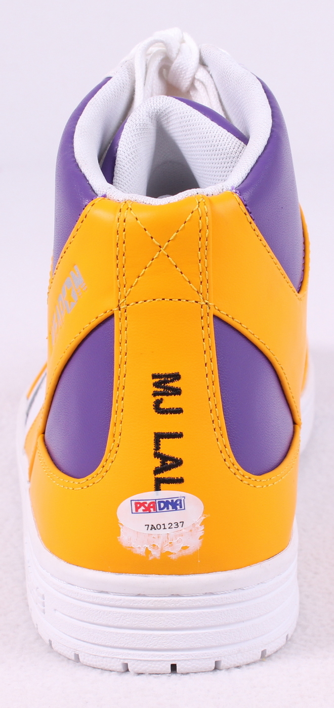 This throwback Converse basketball shoe is similar to the style that Magic Johnson wore in the court. Hand-signed in black felt-tip pen by Magic Johnson (Lakers HOF). The autograph includes an official PSA/DNA hologram and matching COA for authenticity purposes. The signing of this item was witnessed by PSA.