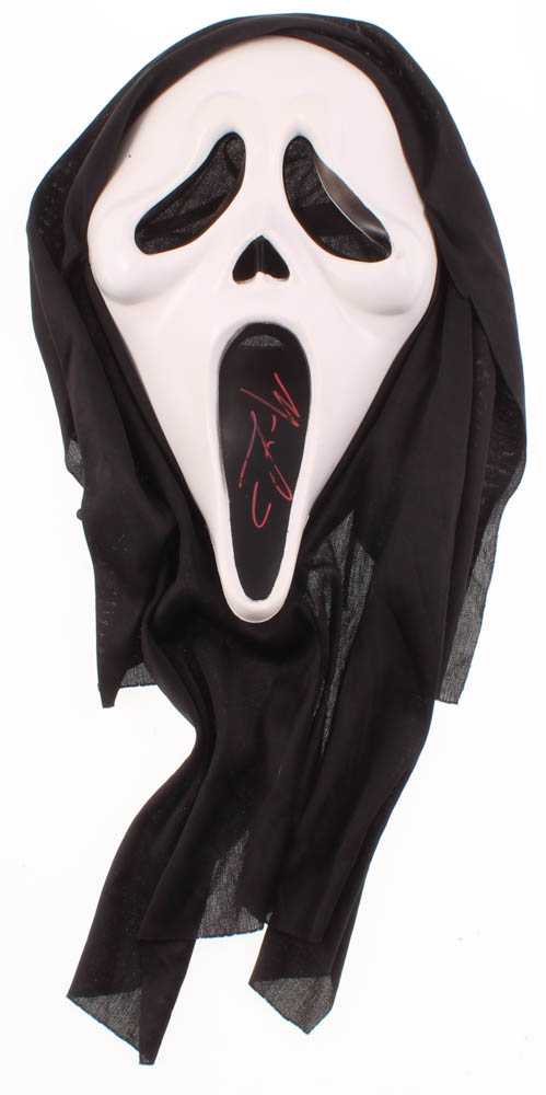 Matthew Lillard signed full-size Ghost Face mask. The mask is hand-signed in red paint pen by Matthew Lillard (Stu Macher, Scream).
