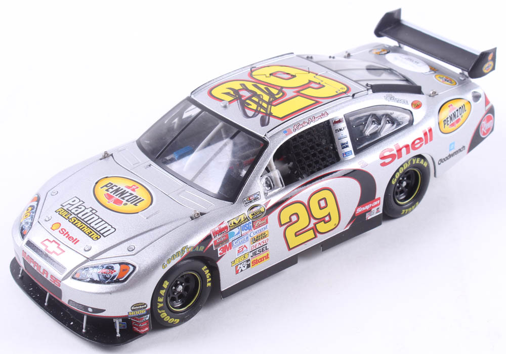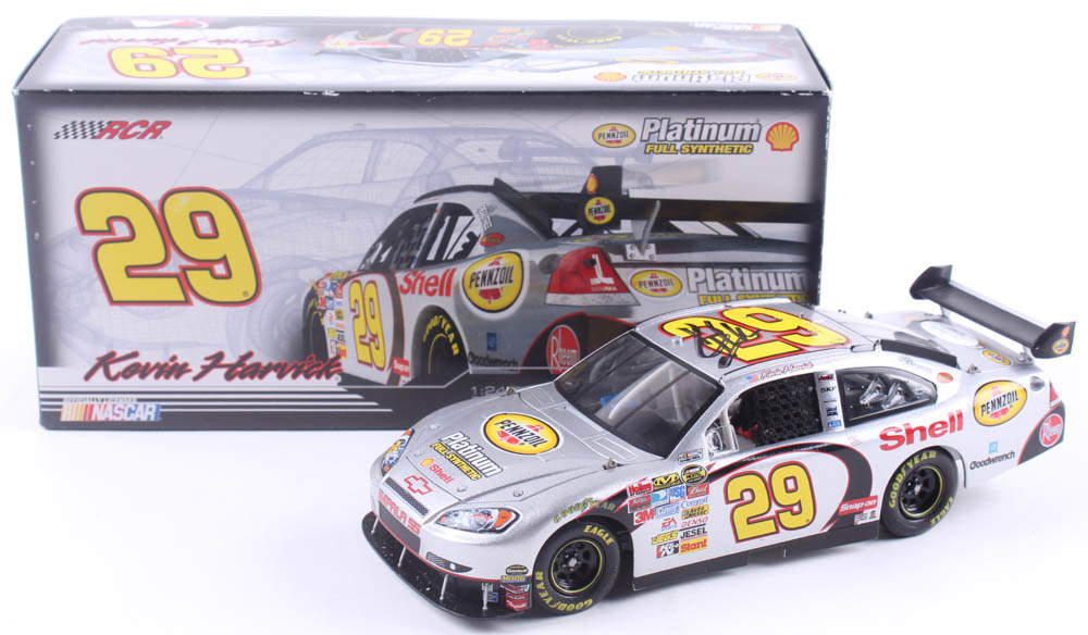 Kevin Harvick #29 Shell 2007 Impala SS COT 1:24 Die-Cast Car has been hand-signed in black felt-tip pen by Kevin Harvick. The car is limited edition #/2,700.