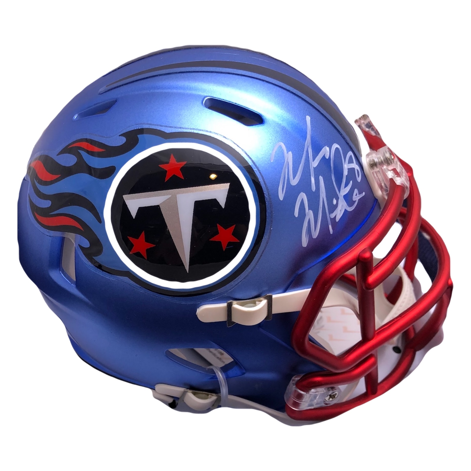 Riddell Tennessee Titans Blaze speed mini helmet has been hand-signed in white paint pen by Marcus Mariota.