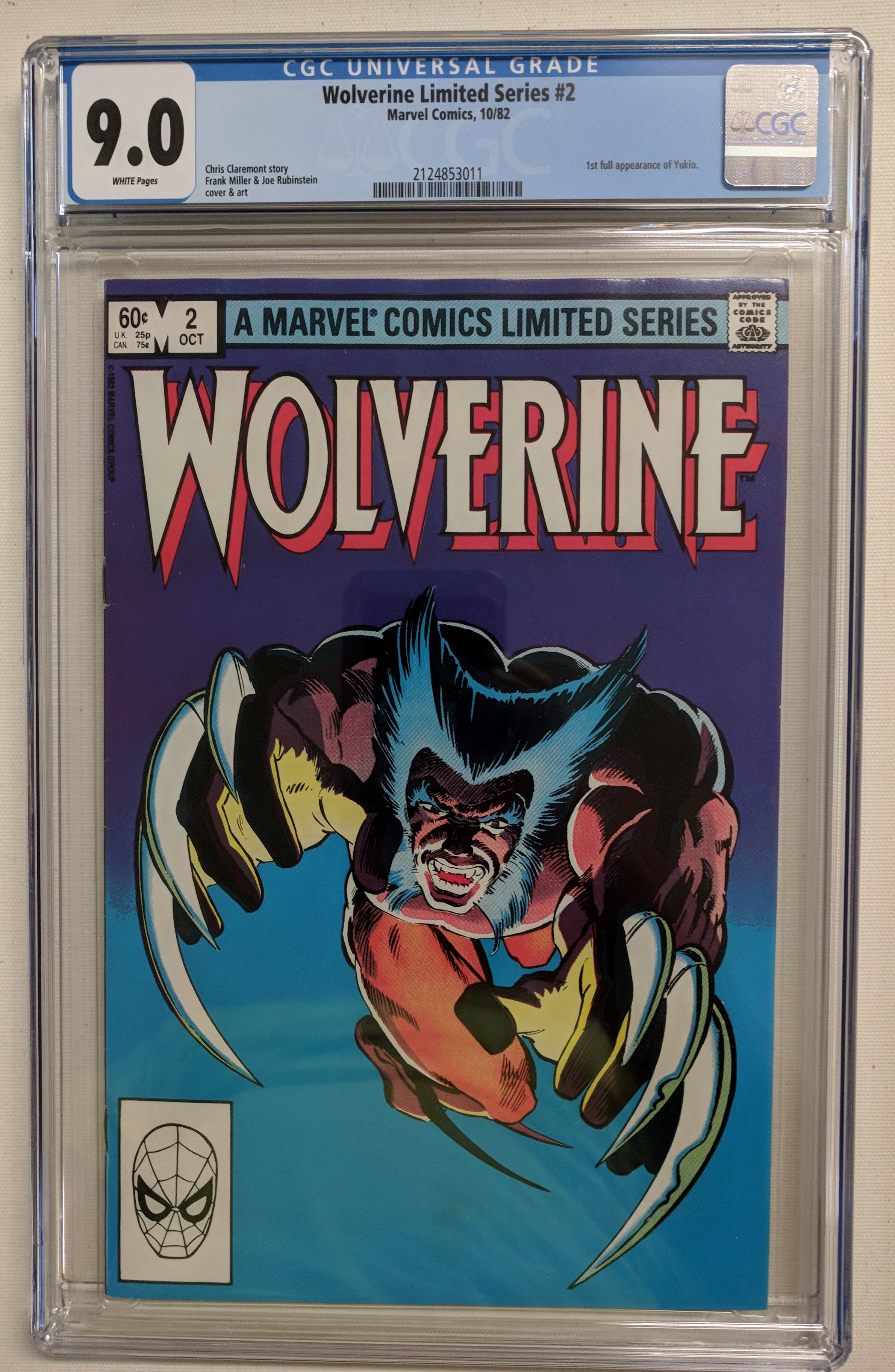 1982 "Wolverine" Issue #2 Marvel comic book. The comic book has been given a grade of (CGC) 9.0.