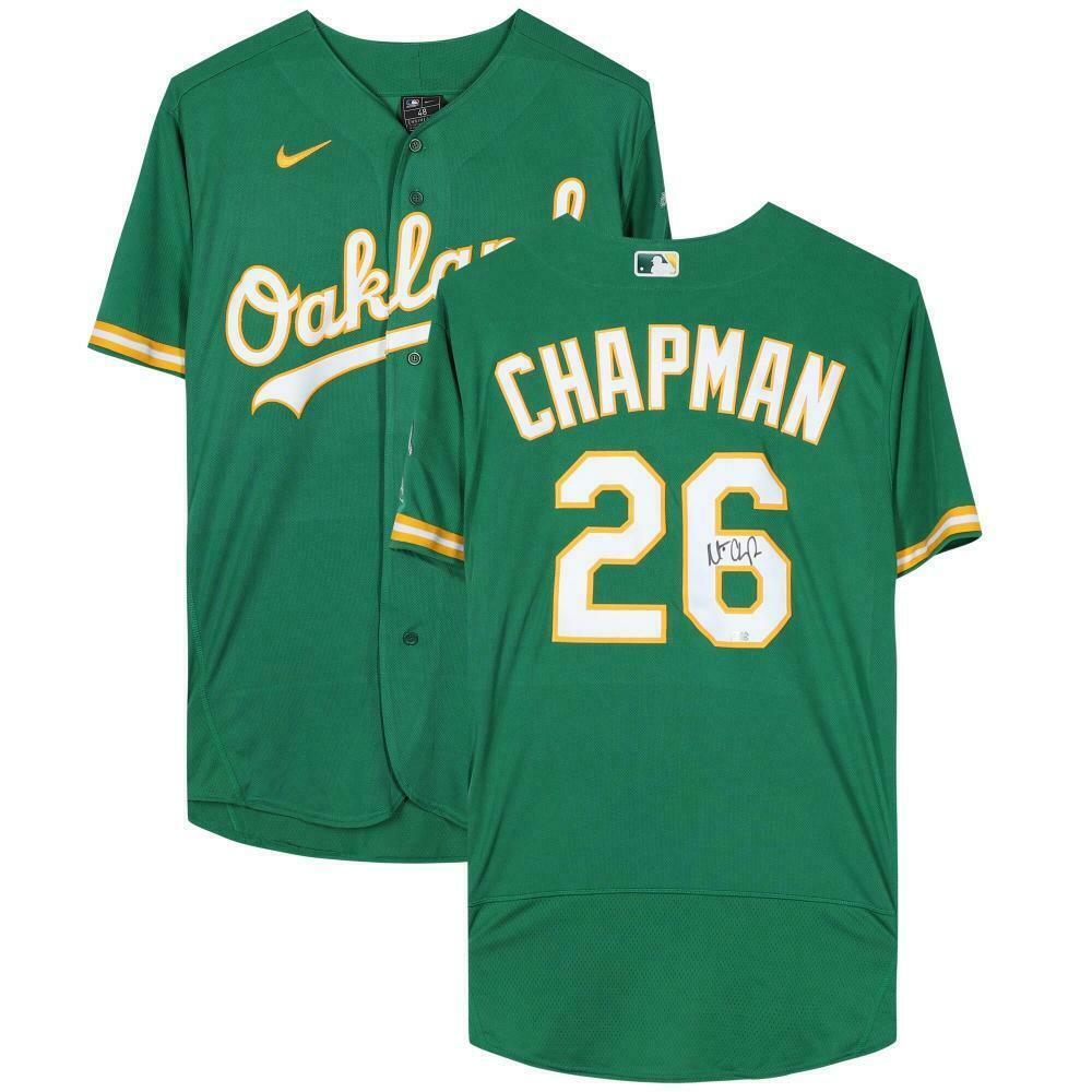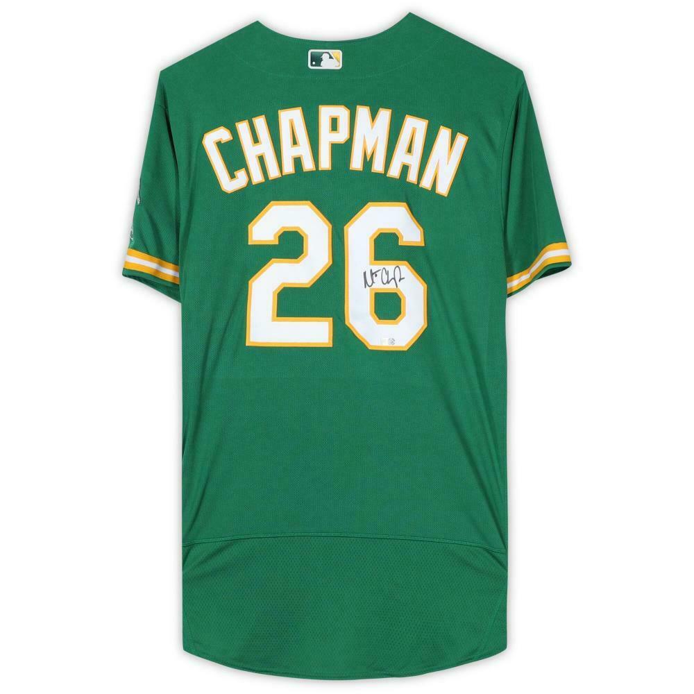Nike on-field style jersey. Everything sewn on, size 48. Hand-signed by Matt Chapman (Oakland Athletics).