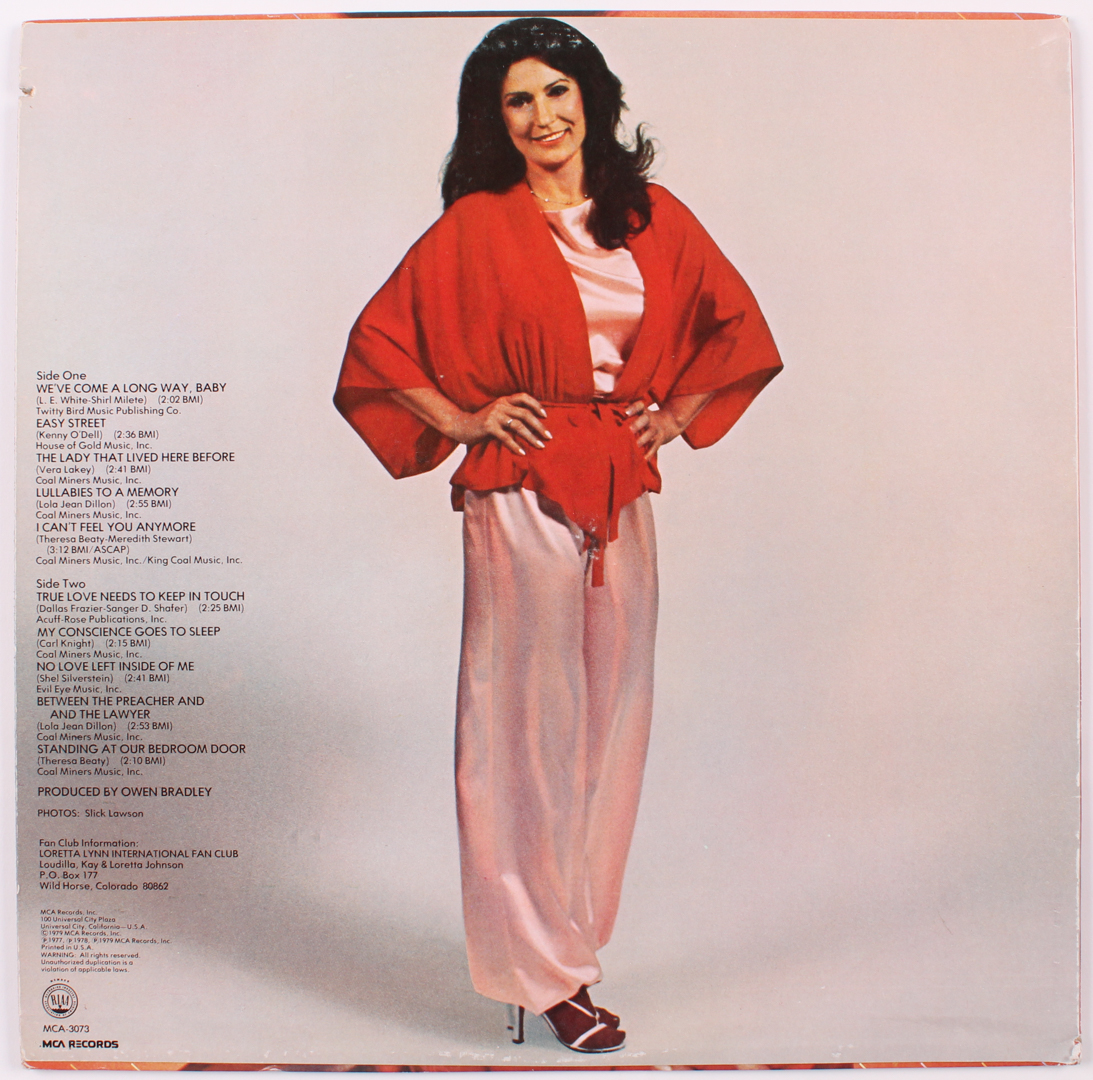 Loretta Lynn “We've Come A Long Way, Baby” vinyl record album. Hand-signed in black felt-tip pen by Loretta Lynn. Please note, the vinyl record is included.