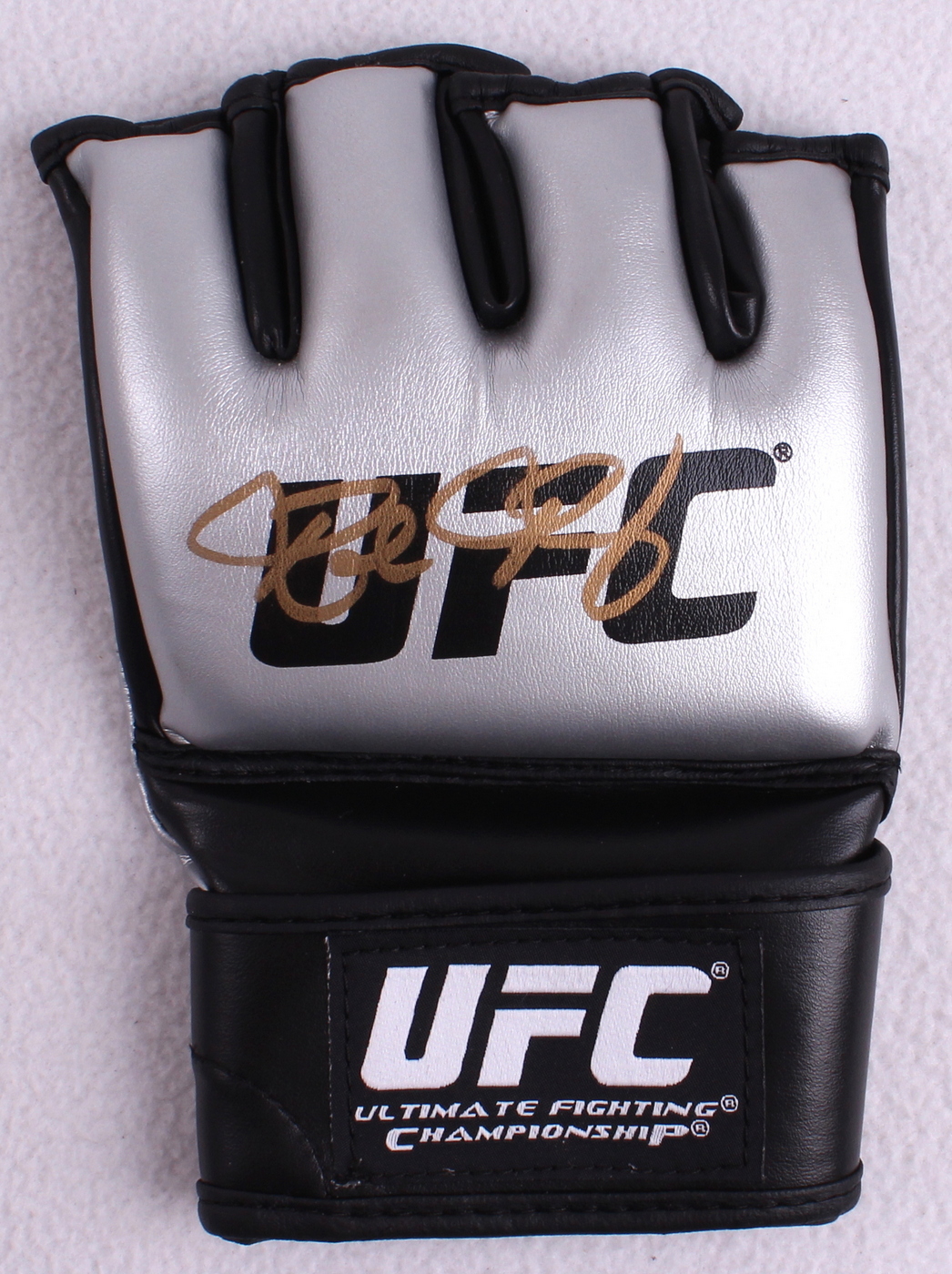 UFC glove. Hand-signed in gold paint pen by Ronda Rousey. The autograph includes an official James Spence Authentication (JSA) hologram and matching COA for authenticity purposes.