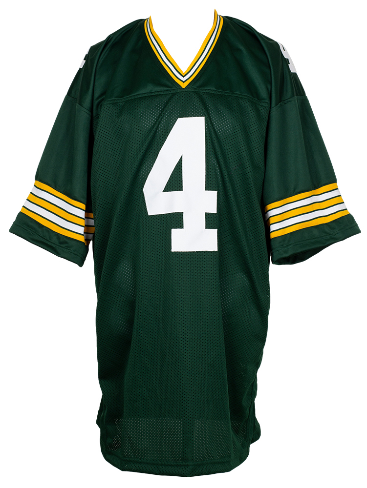 Custom on-field style jersey. Everything sewn on, size XL. Hand-signed in black felt-tip pen by Brett Favre (HOF).