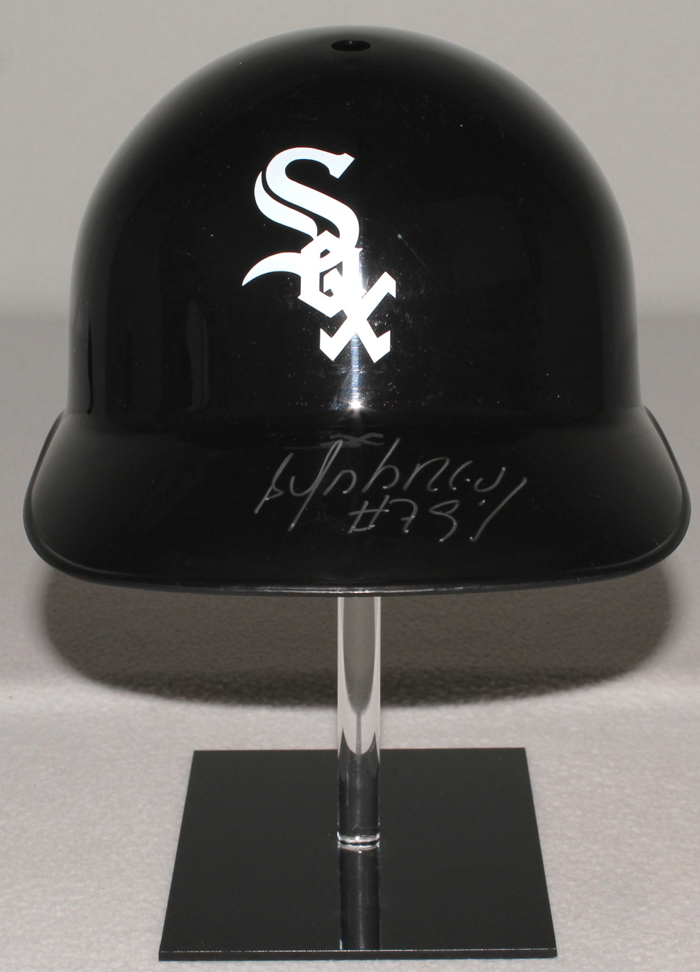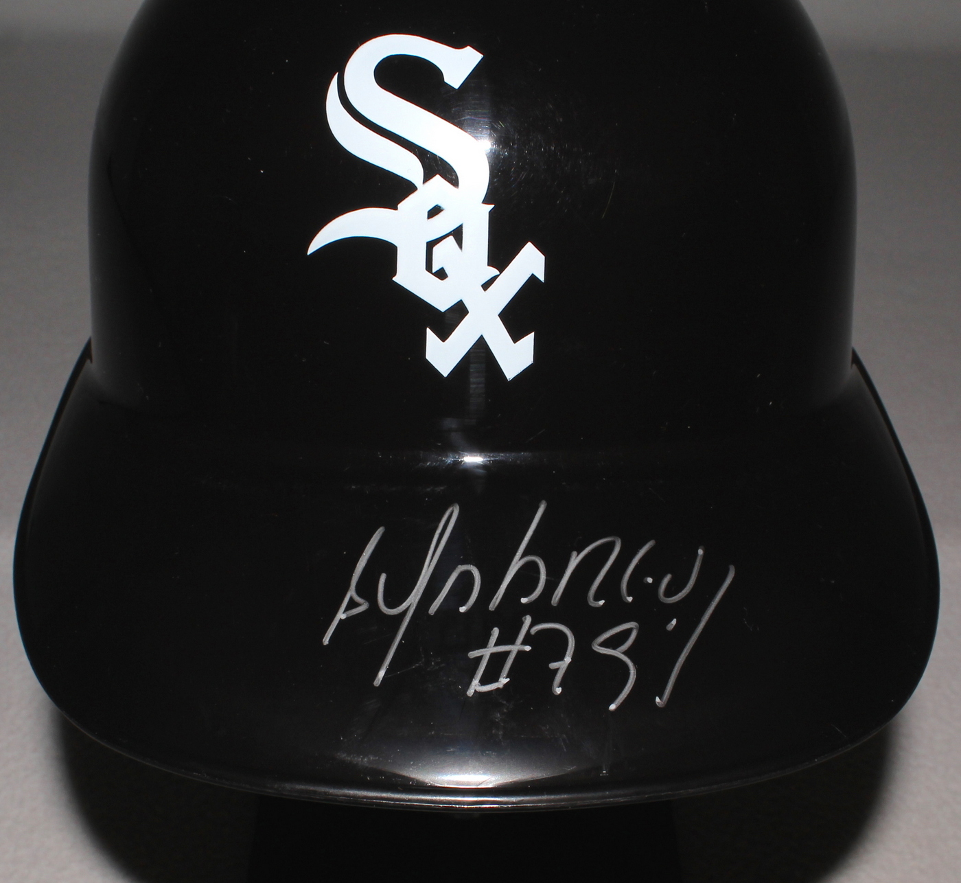 Chicago White Sox souvenir replica batting helmet. Hand signed in silver paint pen by Jose Abreu. Please note the stand is for display purposes only and is not included with the helmet. The autograph includes an official Schwartz Sports Hologram and matching COA for authenticity purposes.